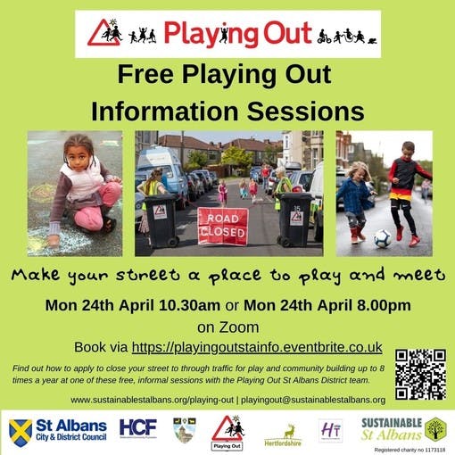 After Easter, Sustainable St Albans are hosting free information sessions for residents about how to hold short street gatherings with road closures in the St Albans District area using the Playing Out scheme. Find out more here.