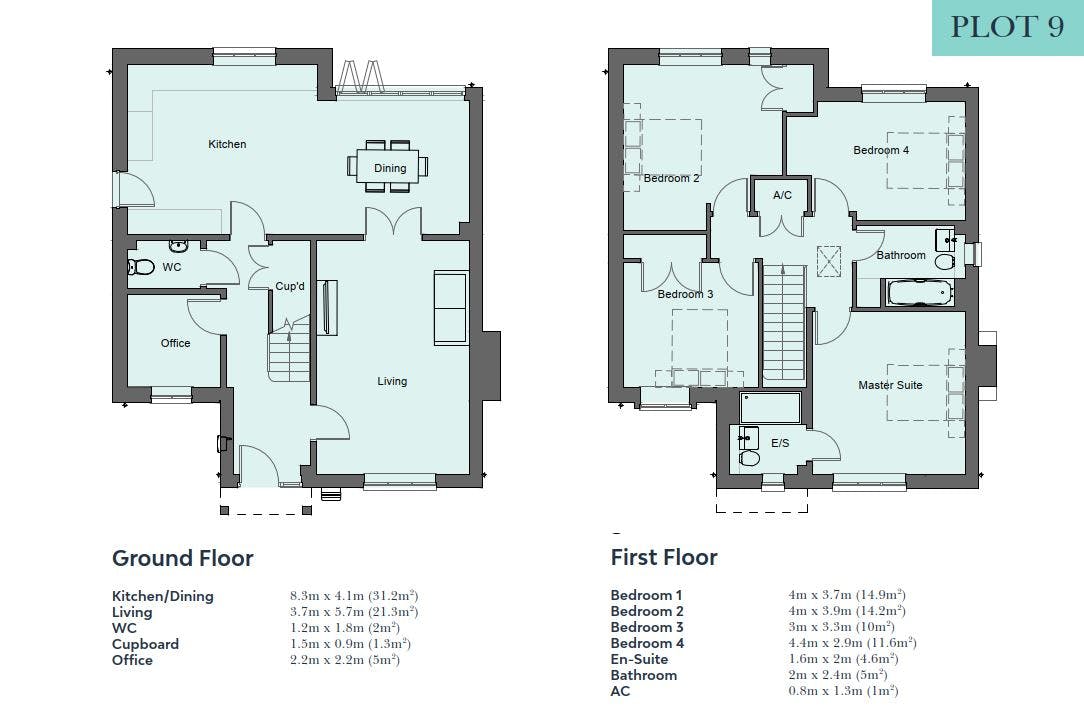 Contemporary porcelain floor & wall tiles in all bathrooms & en-suites.