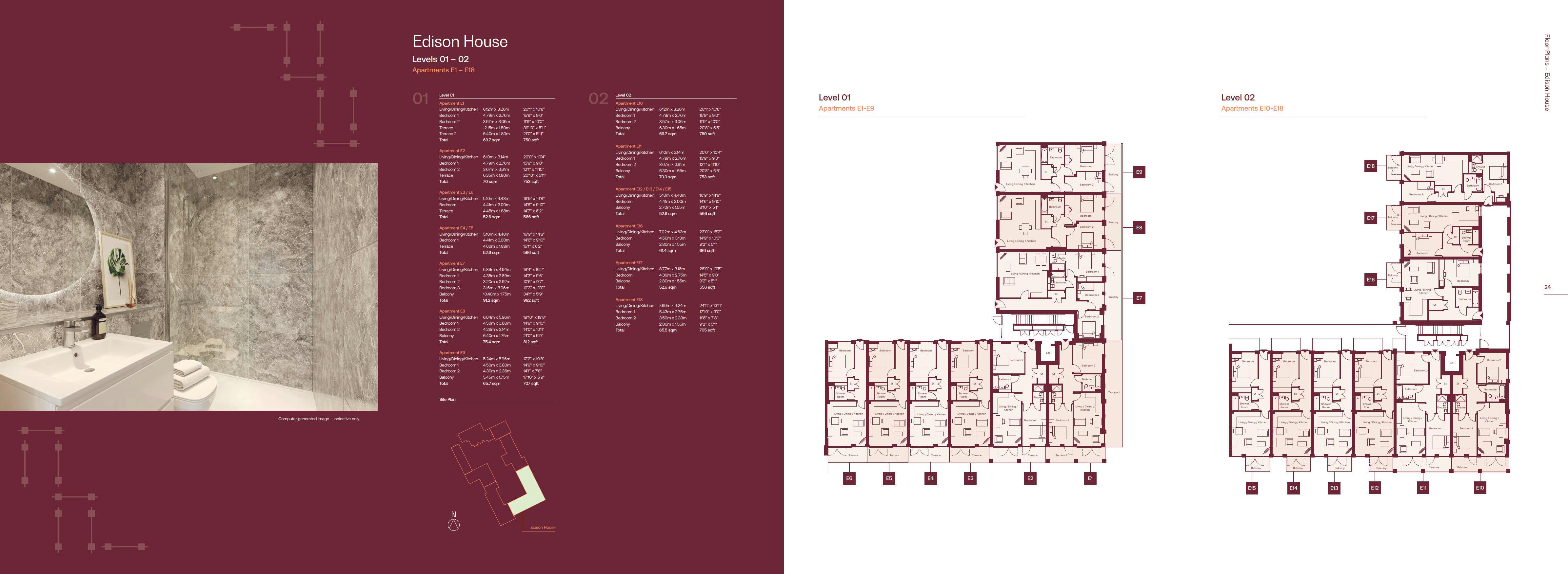 • Large shower with frameless screen to all flats • Duravit bath to flats with two bathrooms