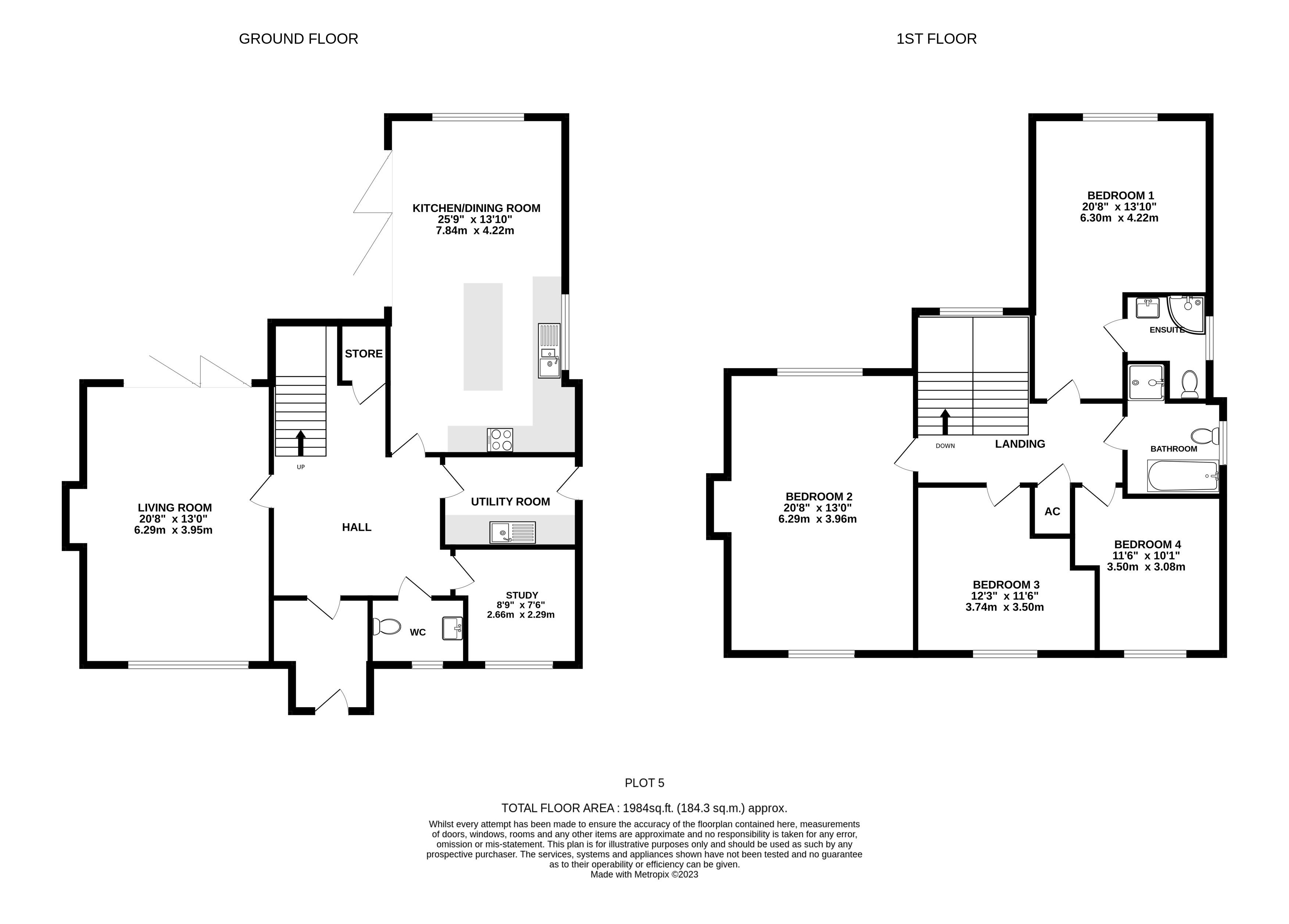Tiled flooring to kitchen, WC, utility and bathrooms.