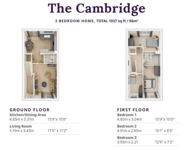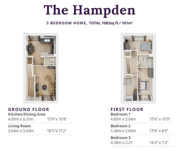 The houses have two double bedrooms and a family bathroom, plus an additional versatile third room which would be used as a bedroom or home office. Plots 2 & 3 have an ensuite