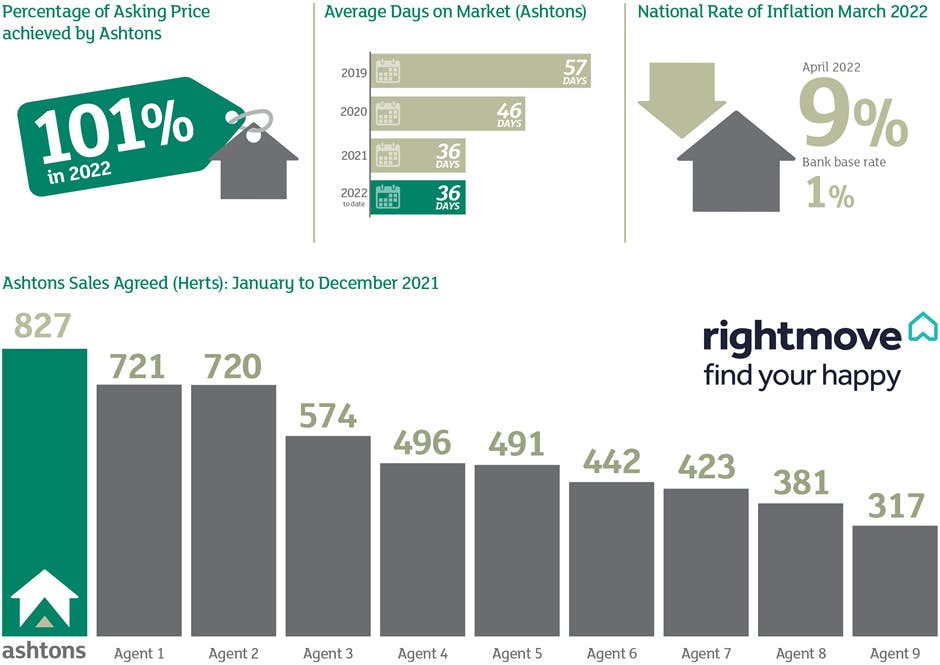 Classic market economics of supply and demand are currently playing out across the market. Housing stock levels have yet to increase to meet the demand either nationally or locally. New buyer registration across the Ashtons Group is up 135% vs the same quarter last year. In contrast, new instructions are only running at 93% versus the same point last year. The recent rise in interest rates may start to apply the brakes to the market, but until the balance of power shifts from seller to buyer the market will continue to rise, all be it not at the rates we have come to expect since the end of the first lockdown in May 2020.