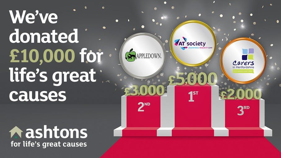 Ashtons are delighted to announce our annual For Life’s Great Causes charity campaign has now closed – and the top three charities receiving a share of £10,000 have been decided… by you!