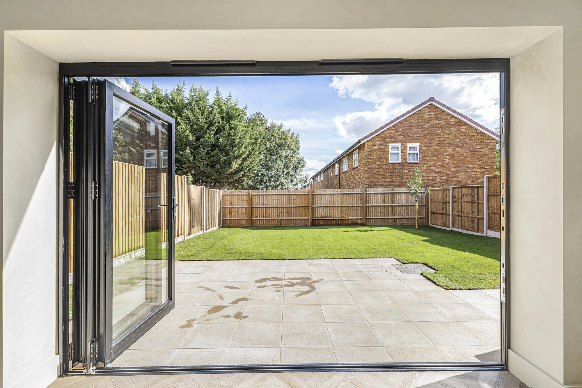 On the outside, the front provides a small lawn with corner landscaping whilst the rear features a lovely easterly aspect garden with large terrace and lawn, offering a tranquil space to relax and entertain. The home also benefits from a private driveway providing off road parking for two cars and there is additional visitor parking available nearby. Gated side access to the rear garden, secure with close-boarded fencing.