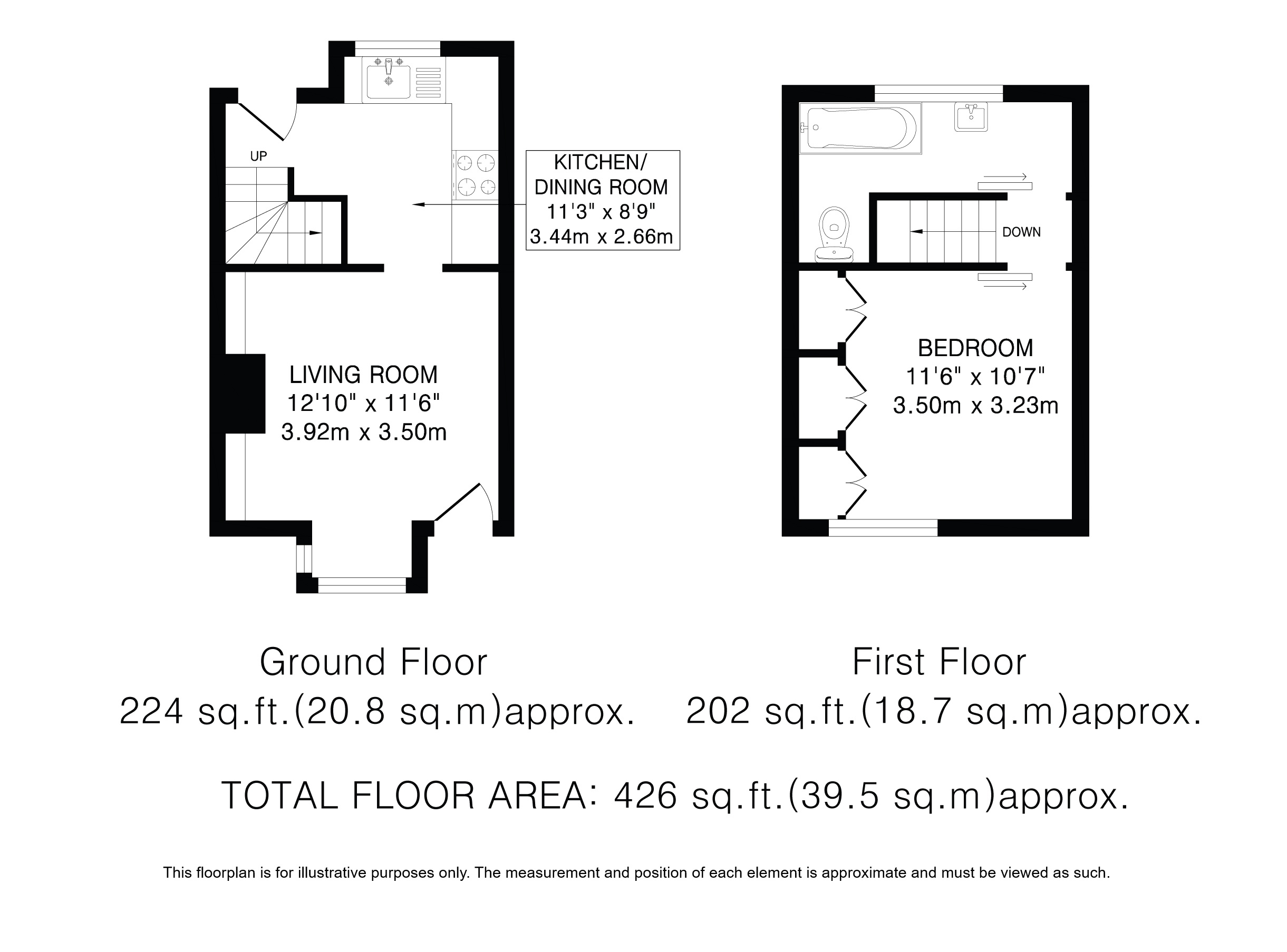 A staircase leads to the first floor where there is a double bedroom with fitted wardrobes and a roomy bathroom. The loft has been recently boarded and insulated and the property has been re-roofed, so there is excellent potential to create a second bedroom (STPP).