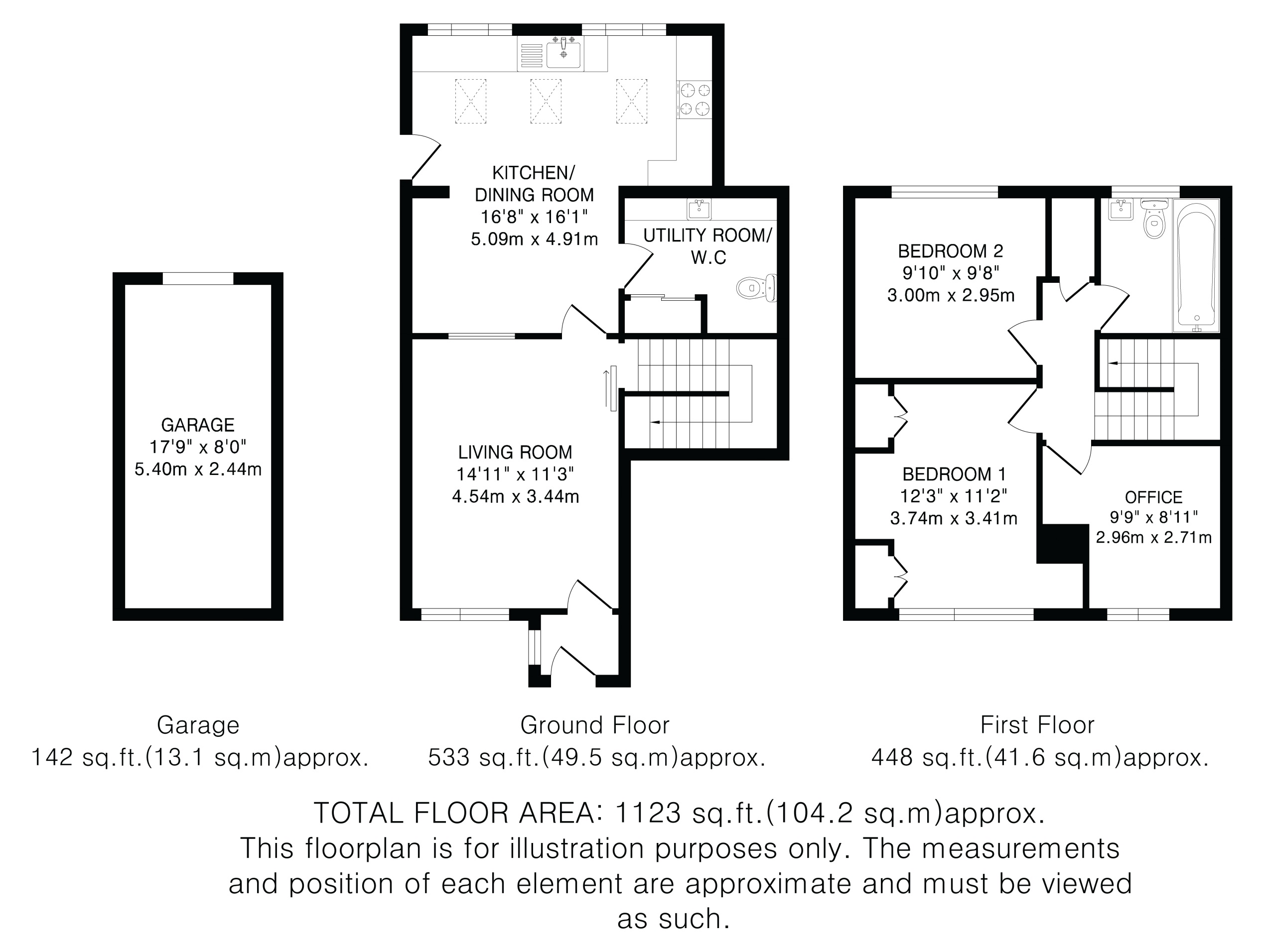 The first floor has three bedrooms with bedroom three currently being used as an office. There is a family bathroom with a bath with shower-over, a hand wash basin and w/c.