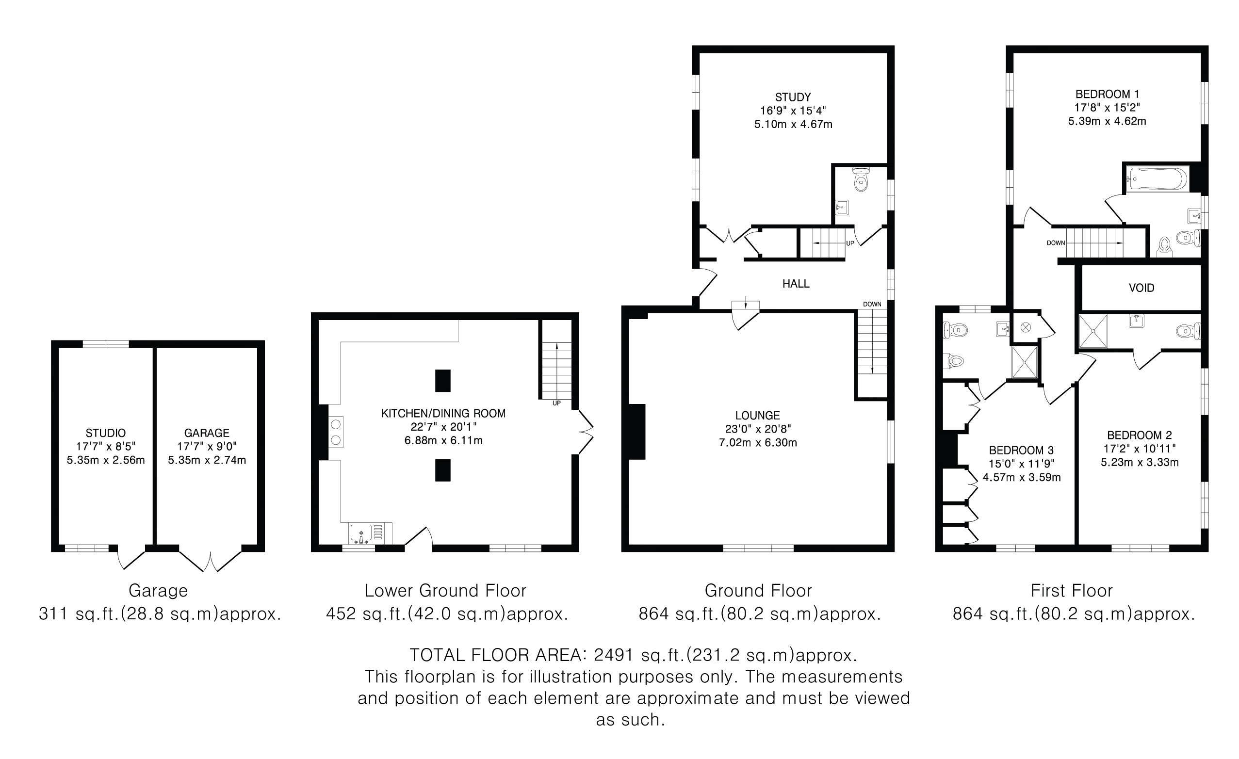 Outside, the property continues to impress. The plot extends to over one acre and comprises a private rear garden with patio, together with an adjoining field. A garage and versatile studio room add further appeal and flexibility.