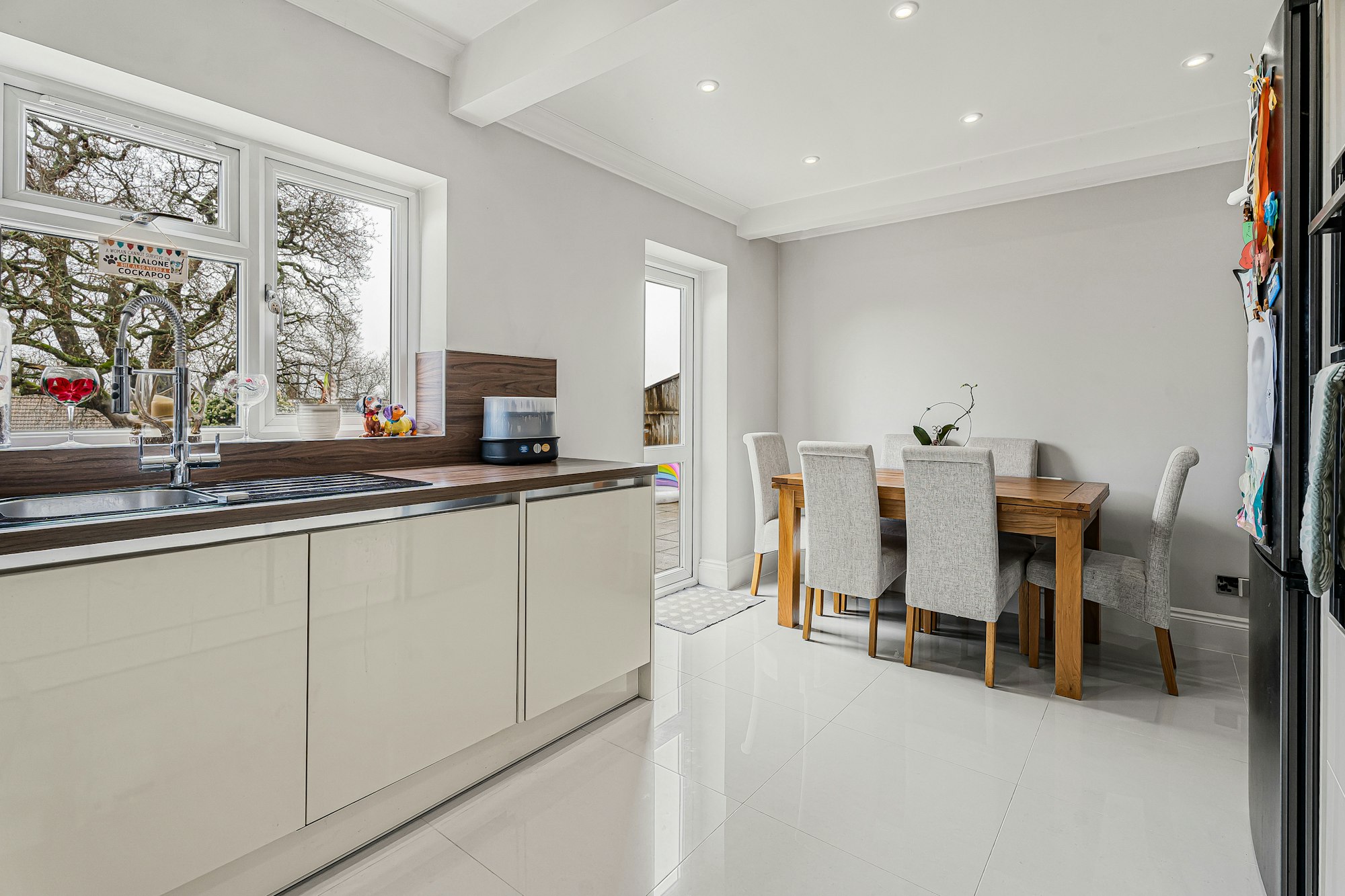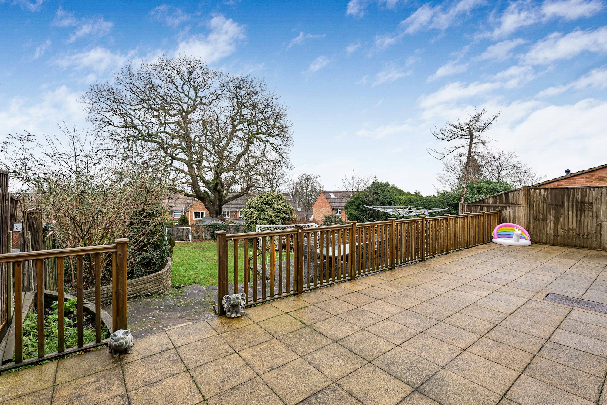 Outside, to the front of the property, a driveway and garage provide secure off-street parking. The mature rear garden is both wide and long, extending to over 80 ft, and offers a peaceful space for family life, relaxation and outdoor activities.