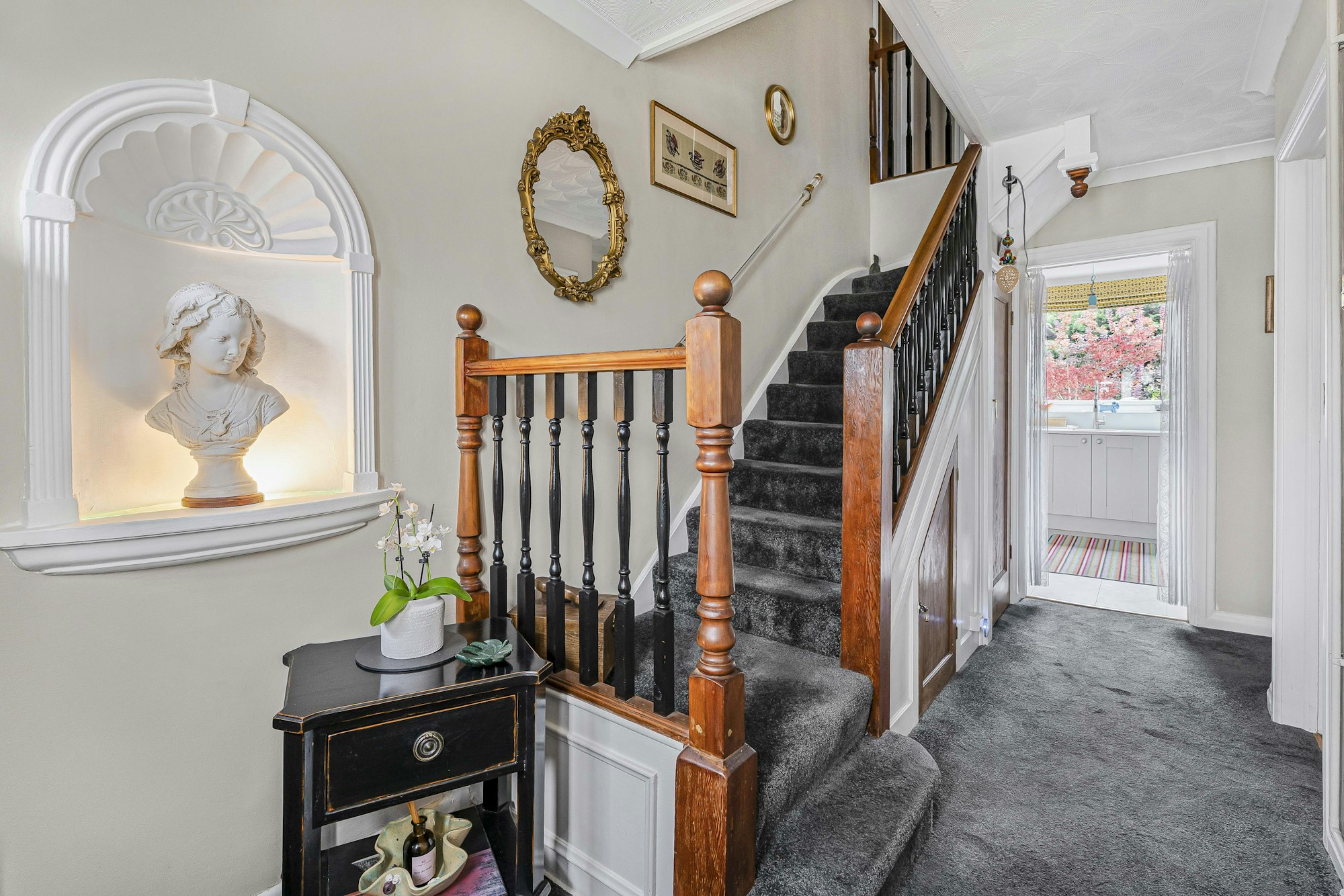 One of the standout features of this property is its south-easterly facing rear garden. With both good depth and width, it provides a wonderful sense of privacy, due to the many mature trees and shrubs thoughtfully planted throughout the garden. There is a raised, part paved part decked, seating area to the very rear of the property, which then leads down onto the sizeable lawn, ideal for children to kick a ball around with siblings or friends.