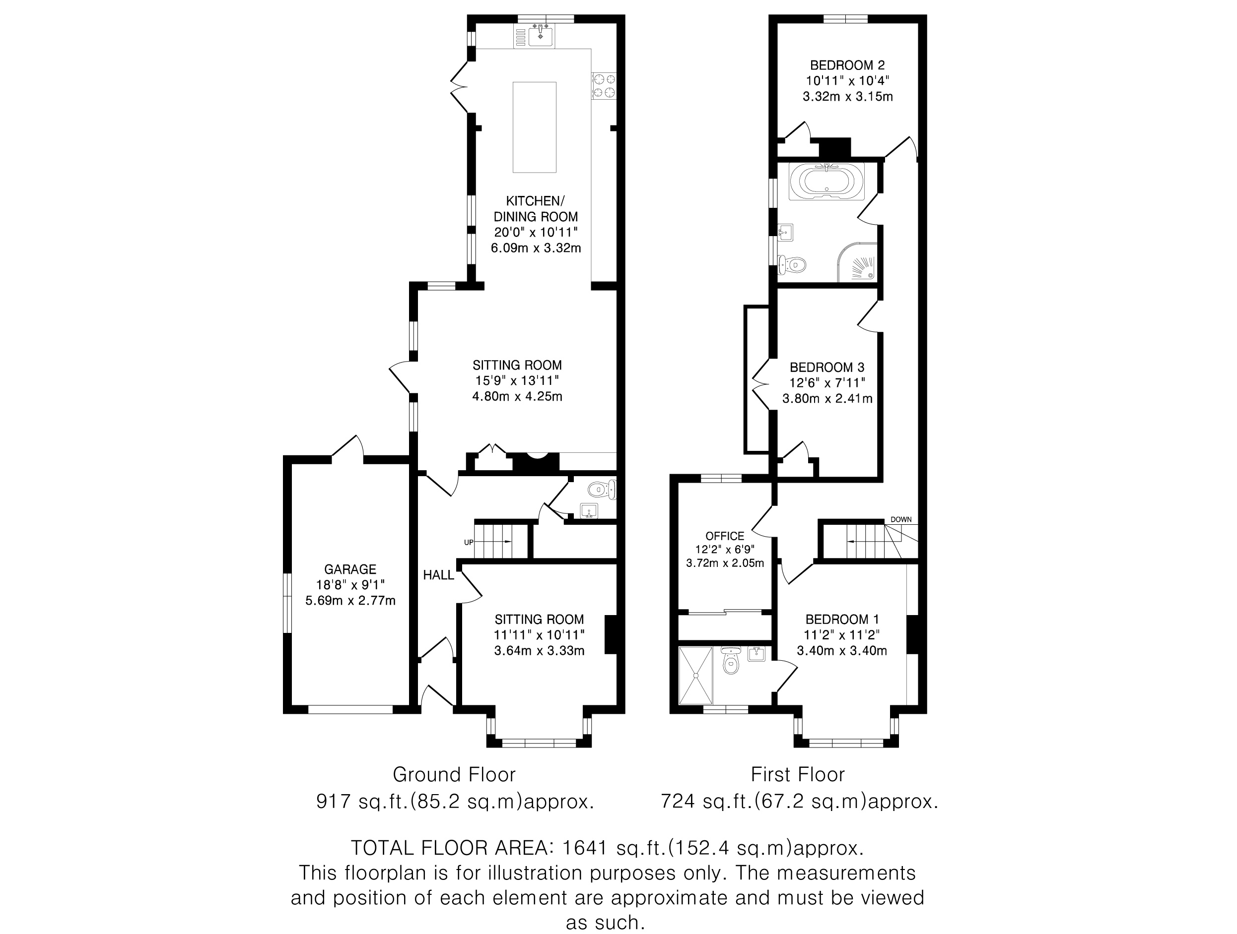 Upon entering the property the impressive hallway sets the tone for this superb home. From here and to the front of the property, the large, separate sitting room boasts high ceilings which is a feature throughout most of the house. There is also a bay window and a lovely feature fireplace. To the rear of the property the breath-taking kitchen/dining/family room has two sets of doors opening out to the rear garden. The kitchen has a number of high-end appliances, including a central island with a wine cooler and storage under. There is ample space for both a sizeable dining table and sofa, from which to enjoy the warming log burner. Completing the downstairs is a w/c.