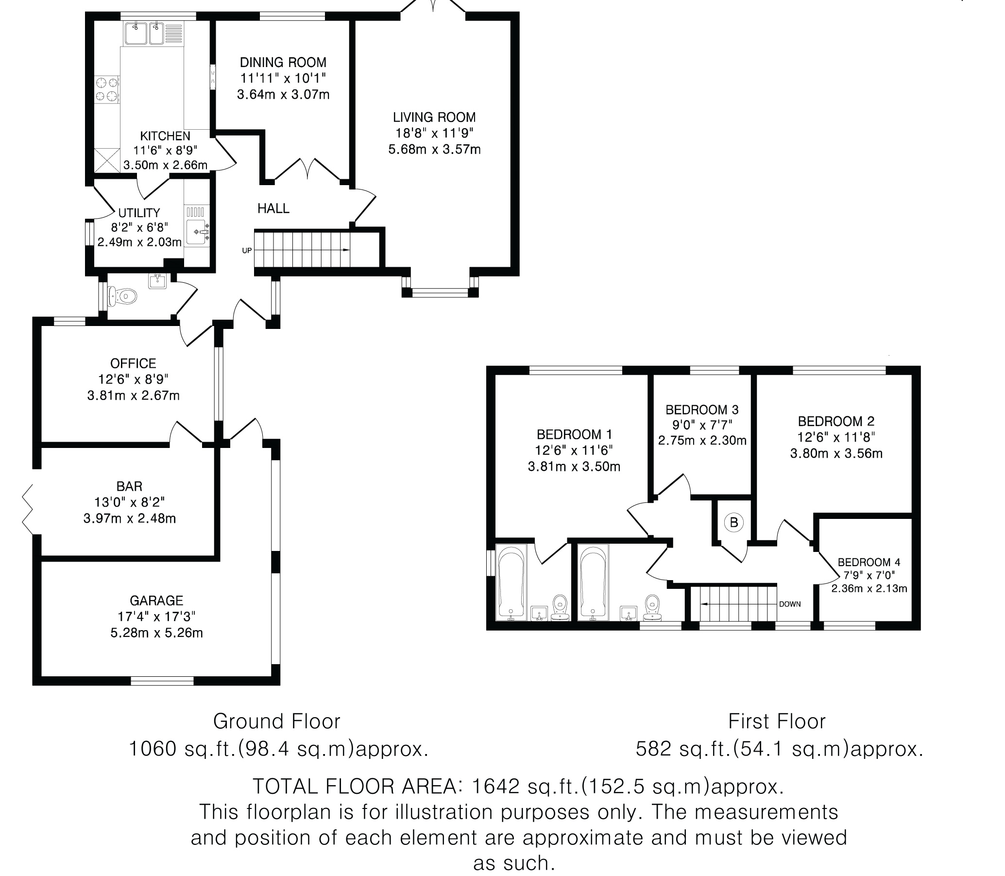 To the first floor, the principal bedroom benefits from an en suite bathroom. There are three further well-proportioned bedrooms, all served by a modern family bathroom.