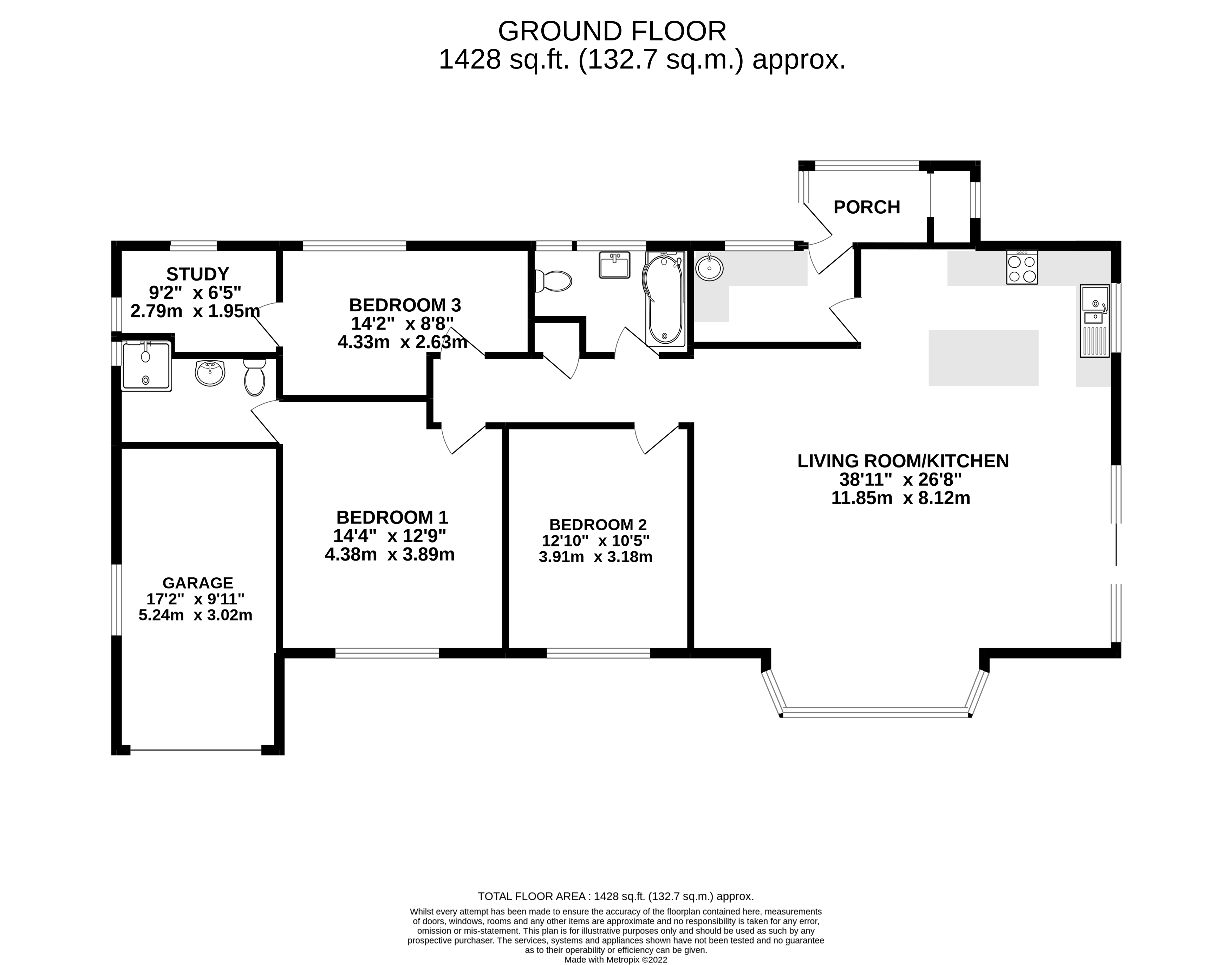 This three bedroom detached bungalow is quietly located down a long driveway on a private plot. There are three bedrooms, two bathrooms, a large kitchen/living room and garage. The property has interesting building potential (STPP) and is offered to the market with no upper chain.