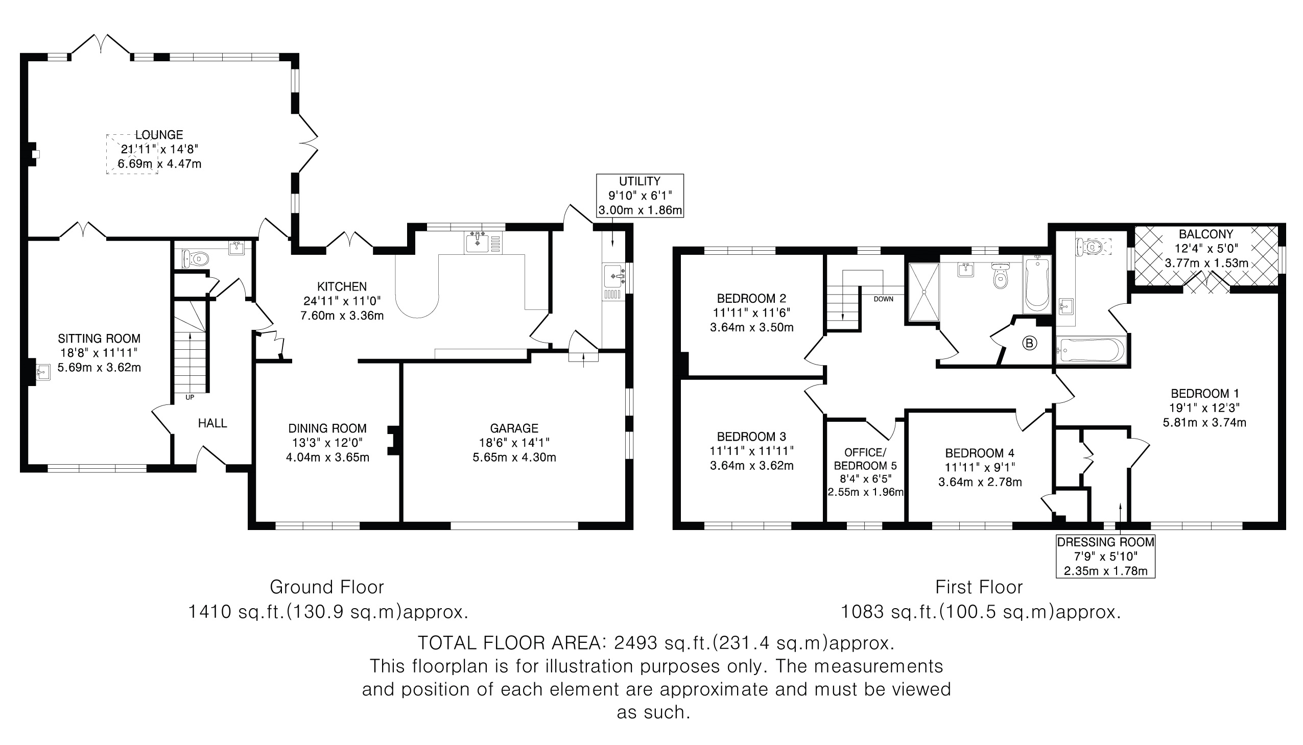 Upstairs are five bedrooms and a large family bathroom with a separate shower cubicle, bath, sink and w/c. The principle suite is an impressive space and comes complete with an ensuite bathroom, a dressing room and a delightful feature is the covered balcony which is a very special place to enjoy while relaxing and taking in the views beyond.