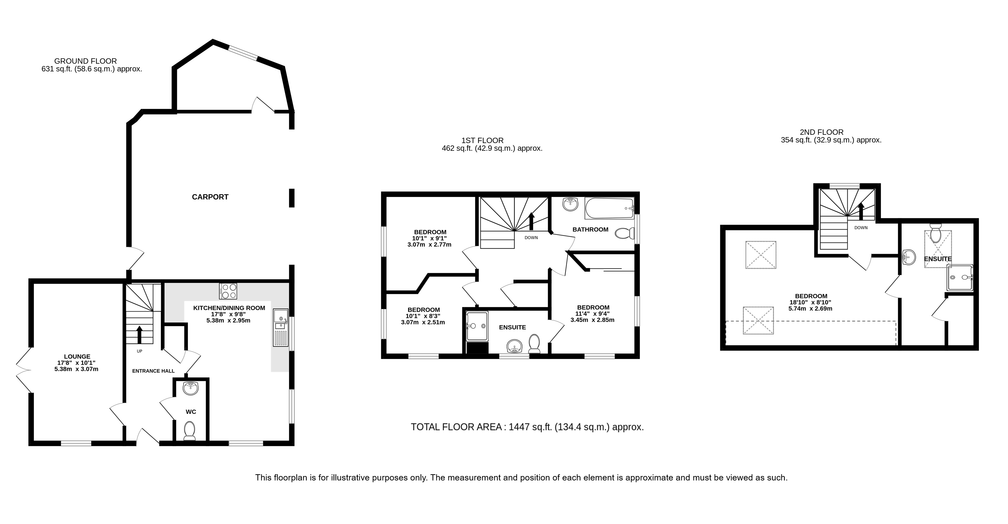 The first floor has two double bedrooms with an ensuite to bedroom one, a further single bedroom and there is a second 'family' bathroom. The second floor has an additional double bedroom and ensuite.