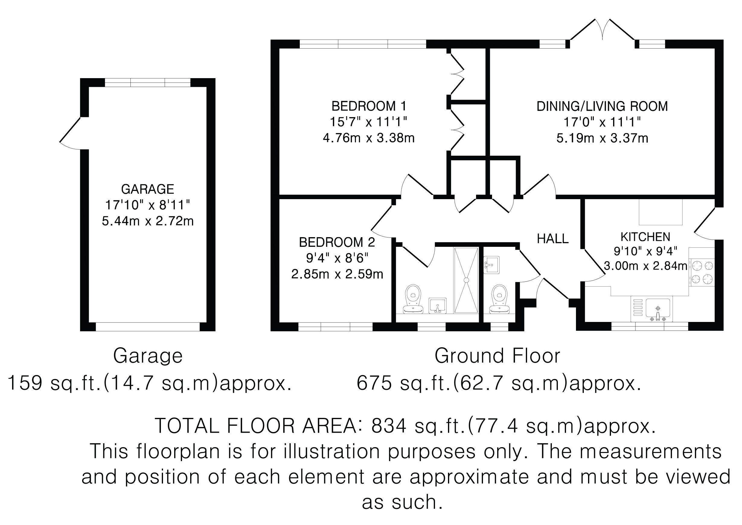 The property comprises a welcoming entrance hallway which leads though to the living area where there are patio doors leading out to the garden. The kitchen offers good space and has been recently renovated with new work surfaces and splash back. There are two double bedrooms with the main bedroom boasting fitted wardrobes. There is a modern shower room with toilet, basin and walk in shower plus an additional WC off the entrance hallway.