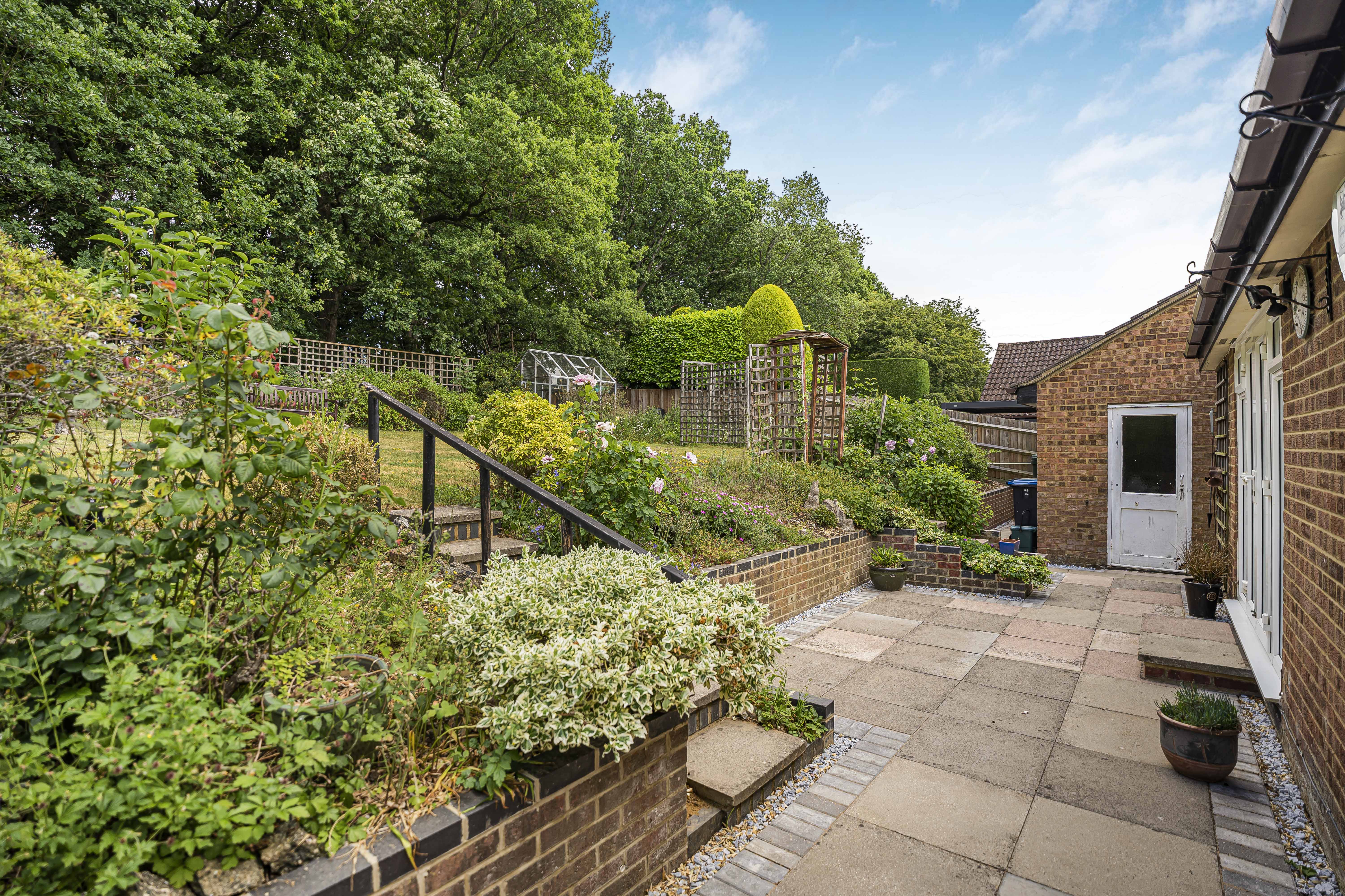 The garden has been well maintained and has both a patio area and a lawn with mature borders and flower beds. The garden backs onto woodlands and is convenient for local walks towards Ashridge. At the front of the property there is a single garage and driveway parking.