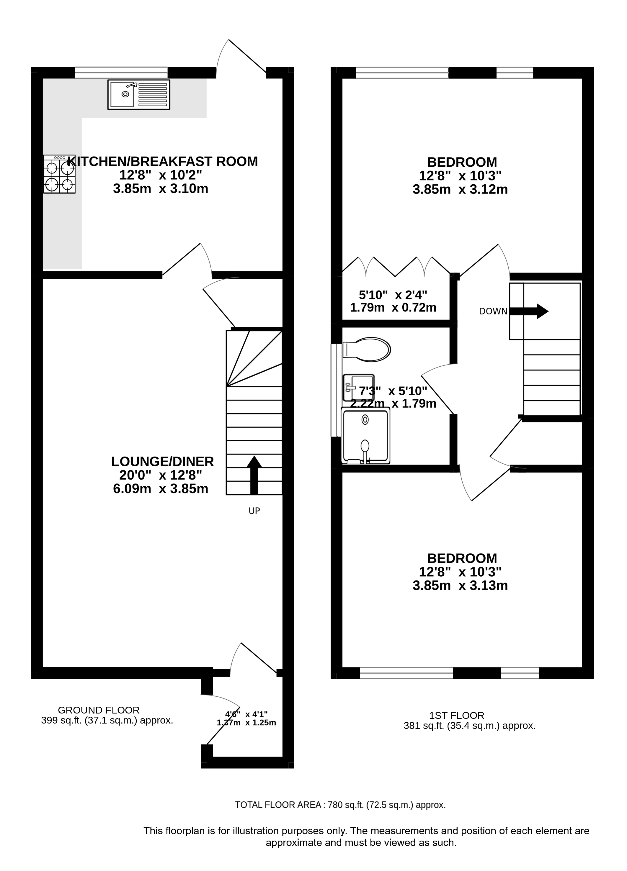 Upstairs, you will find two generously sized double bedrooms, one of which includes built-in wardrobes, and a wet room. Ample storage is available throughout the property.