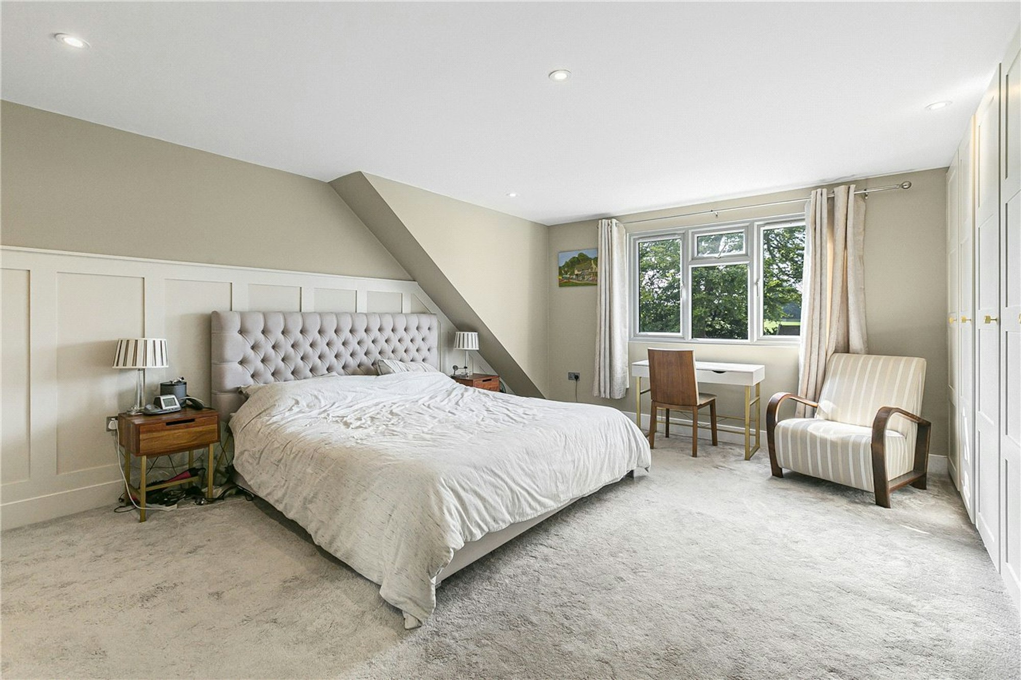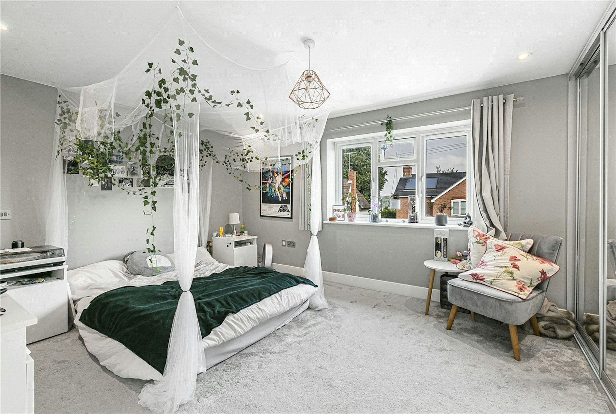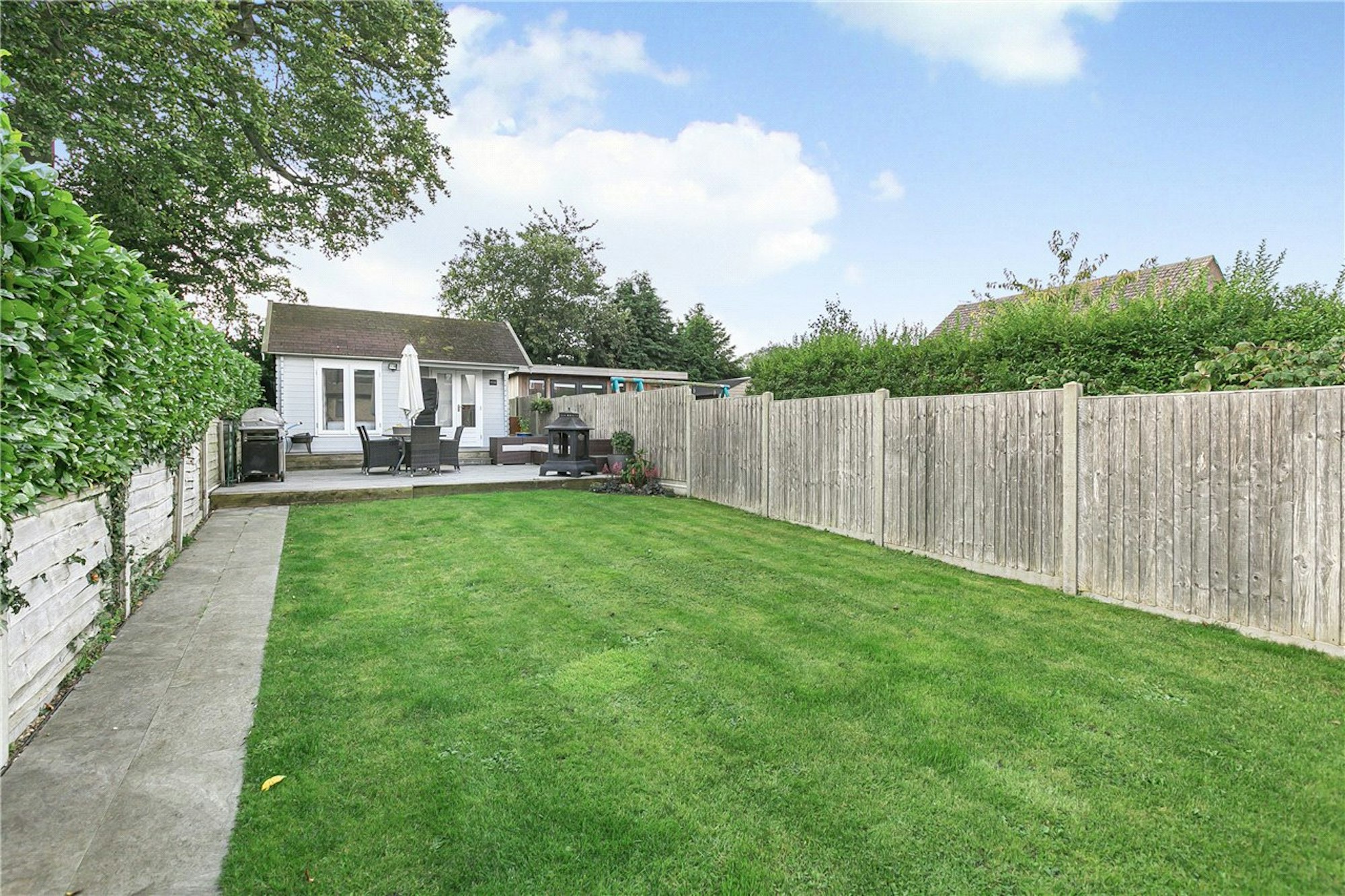 The garden has been beautifully landscaped to include two large patio areas at both the front and back of the garden, with steps leading to a lawned area and at the rear there is a garden room which would be an ideal guest area or home office, with a living space, bedroom and a shower room.
