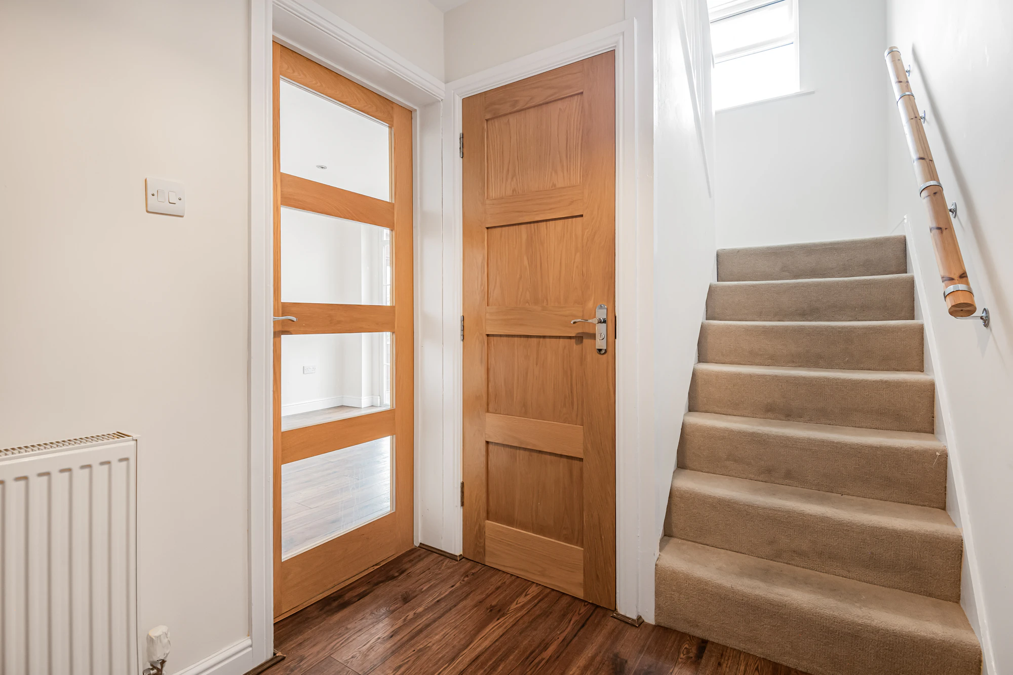 The house is approached by a path alongside a lovely garden and the front door opens into a spacious entrance hall.