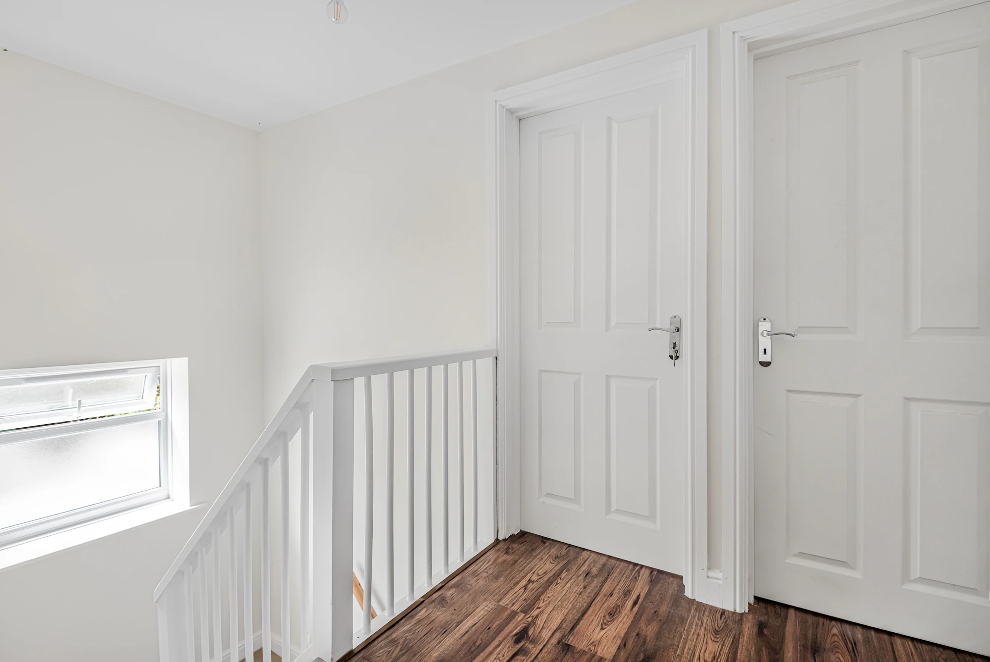Upstairs is particularly well configured; to one side of the landing there is a sizeable room with windows to front and rear which serves as an excellent reception space, and across the landing there are two large double bedrooms. There is also a modern family bathroom.