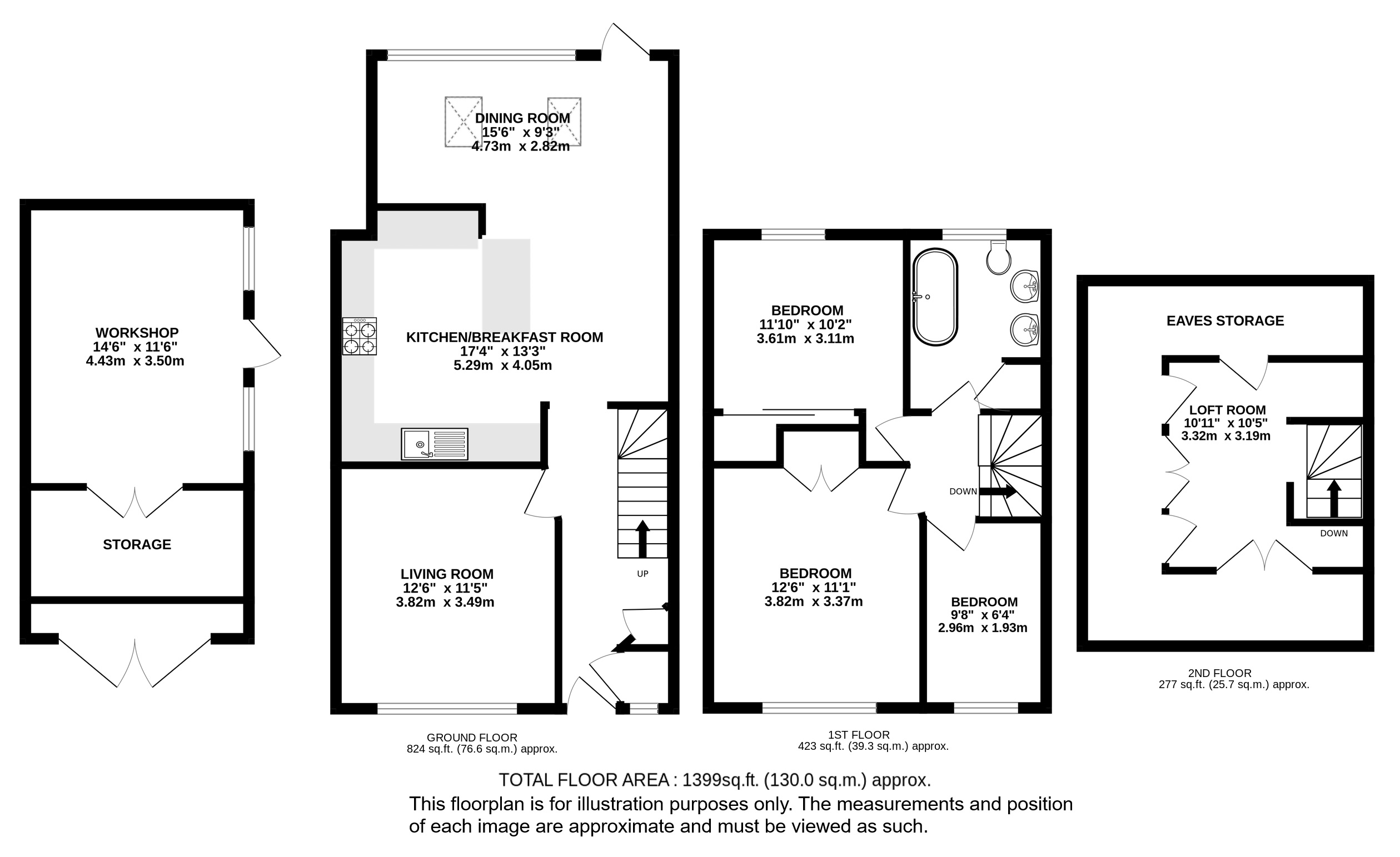 The rear garden is a great size, and has a large lawn as well as a paved seating area, with plenty of mature trees and shrubs providing privacy. The property has a detached garage accessed by a shared driveway which could be ideal as a workshop or home office, with storage to the front.