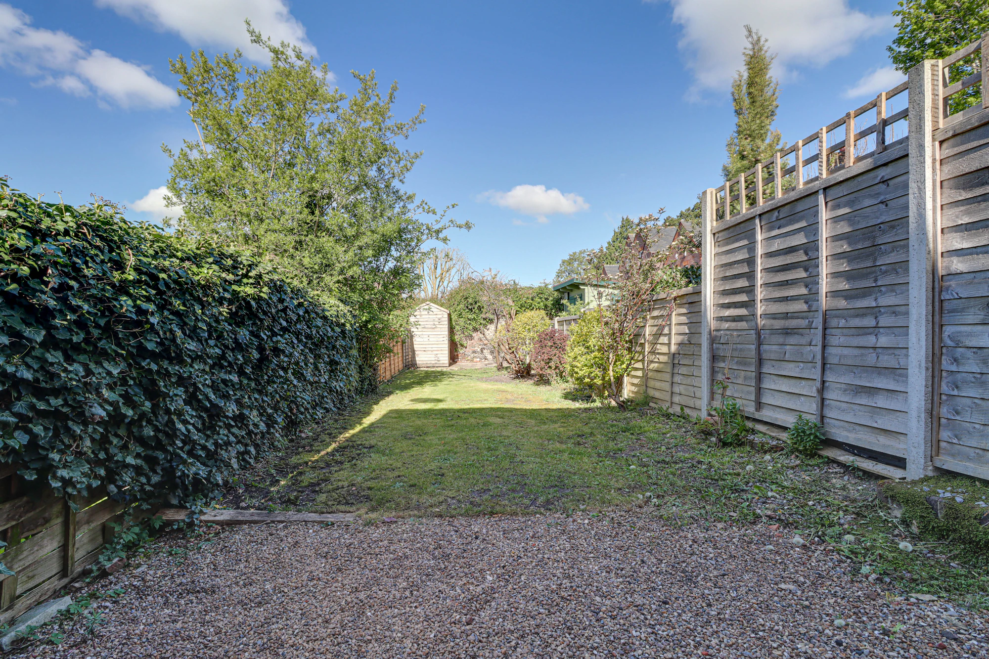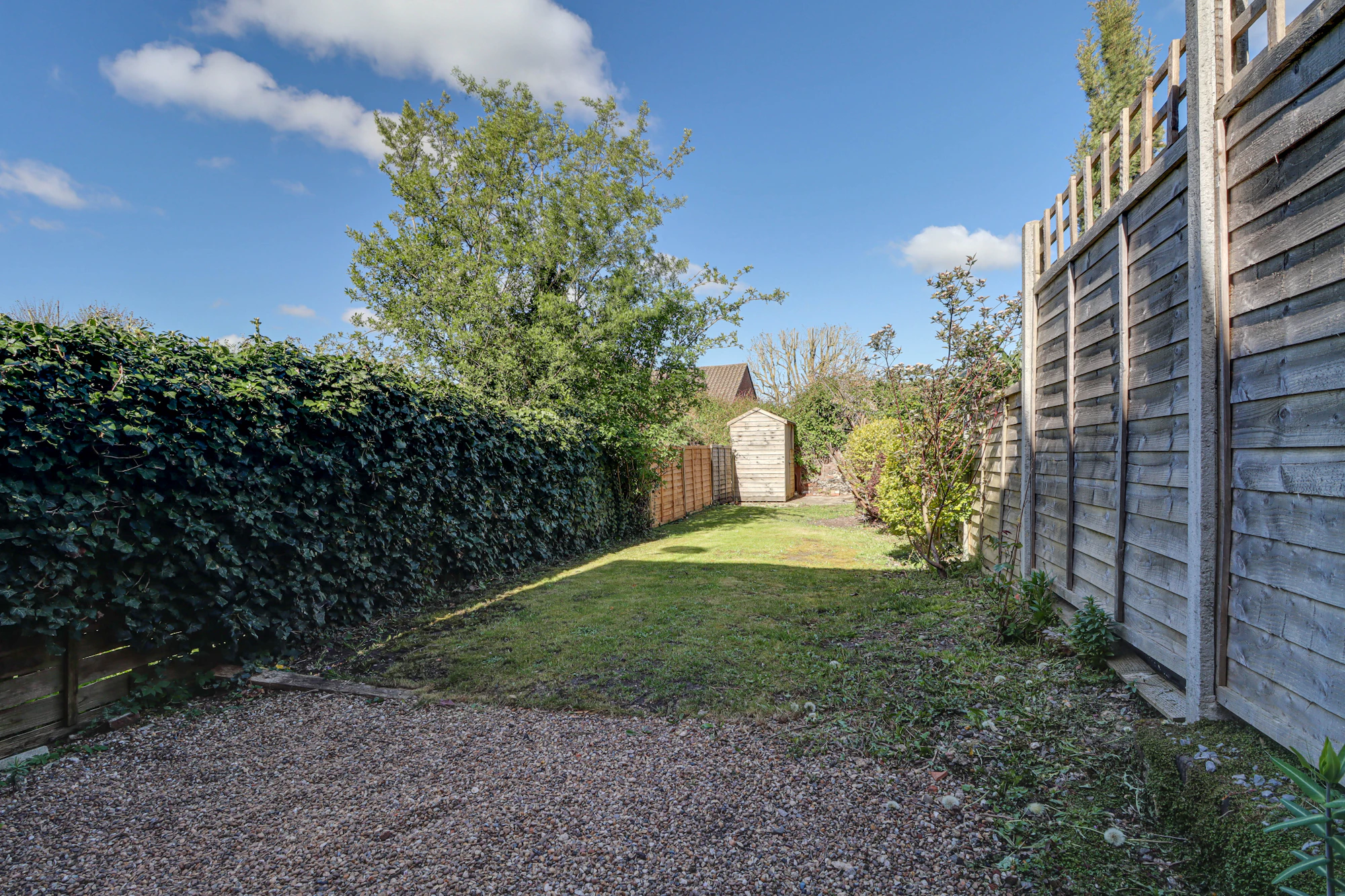 Outside, the pleasant west-facing rear garden enjoys afternoon and evening sunshine, with an area of lawn, established boundary shrubs and a timber shed to the rear providing useful external storage.