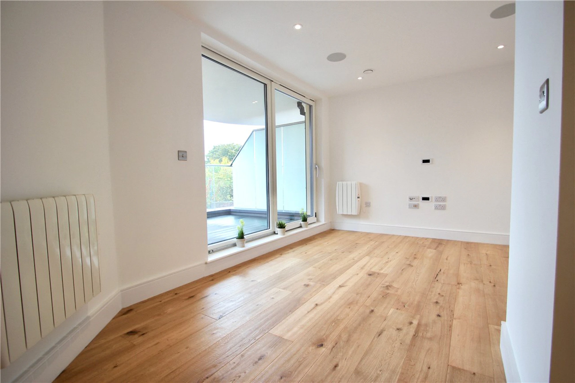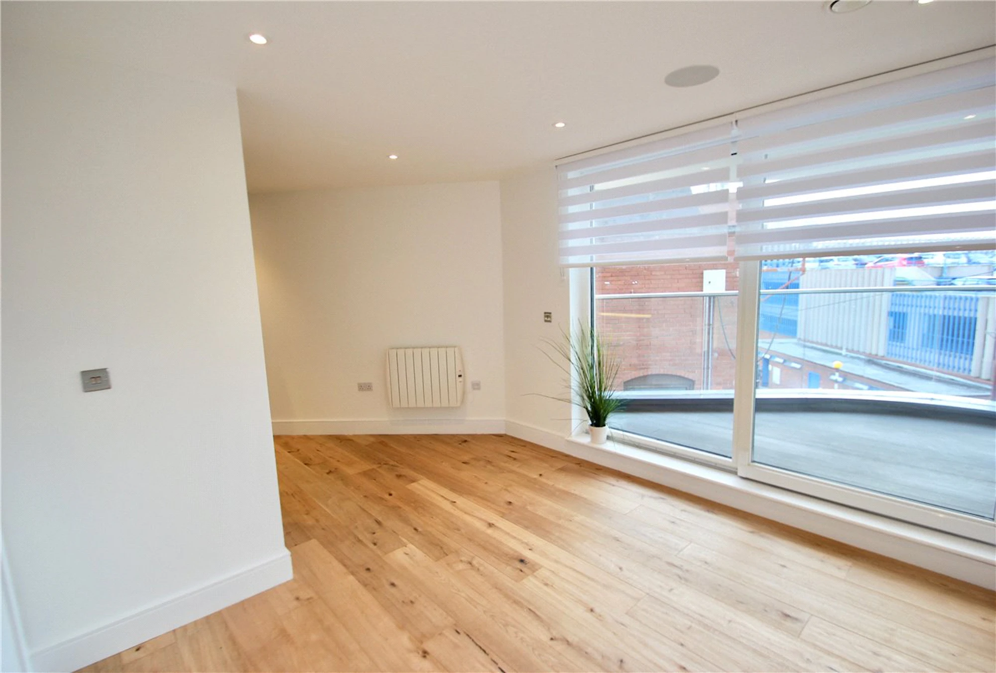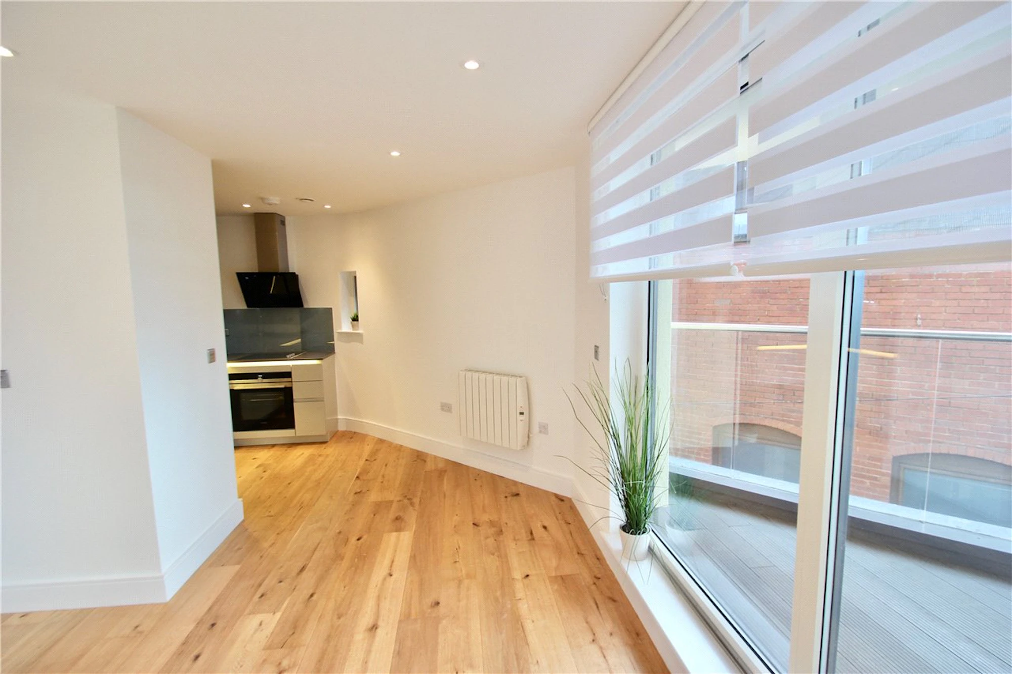 Among the many features are; wood flooring, LED lighting and wall mounted speakers set up for a wireless music system. At the hub of the apartment is the open plan kitchen/living area which opens out onto the private balcony.