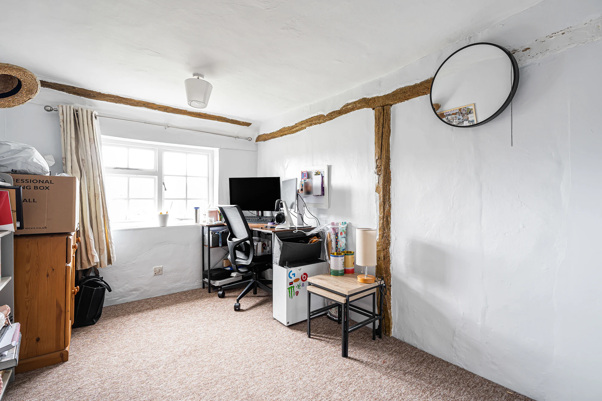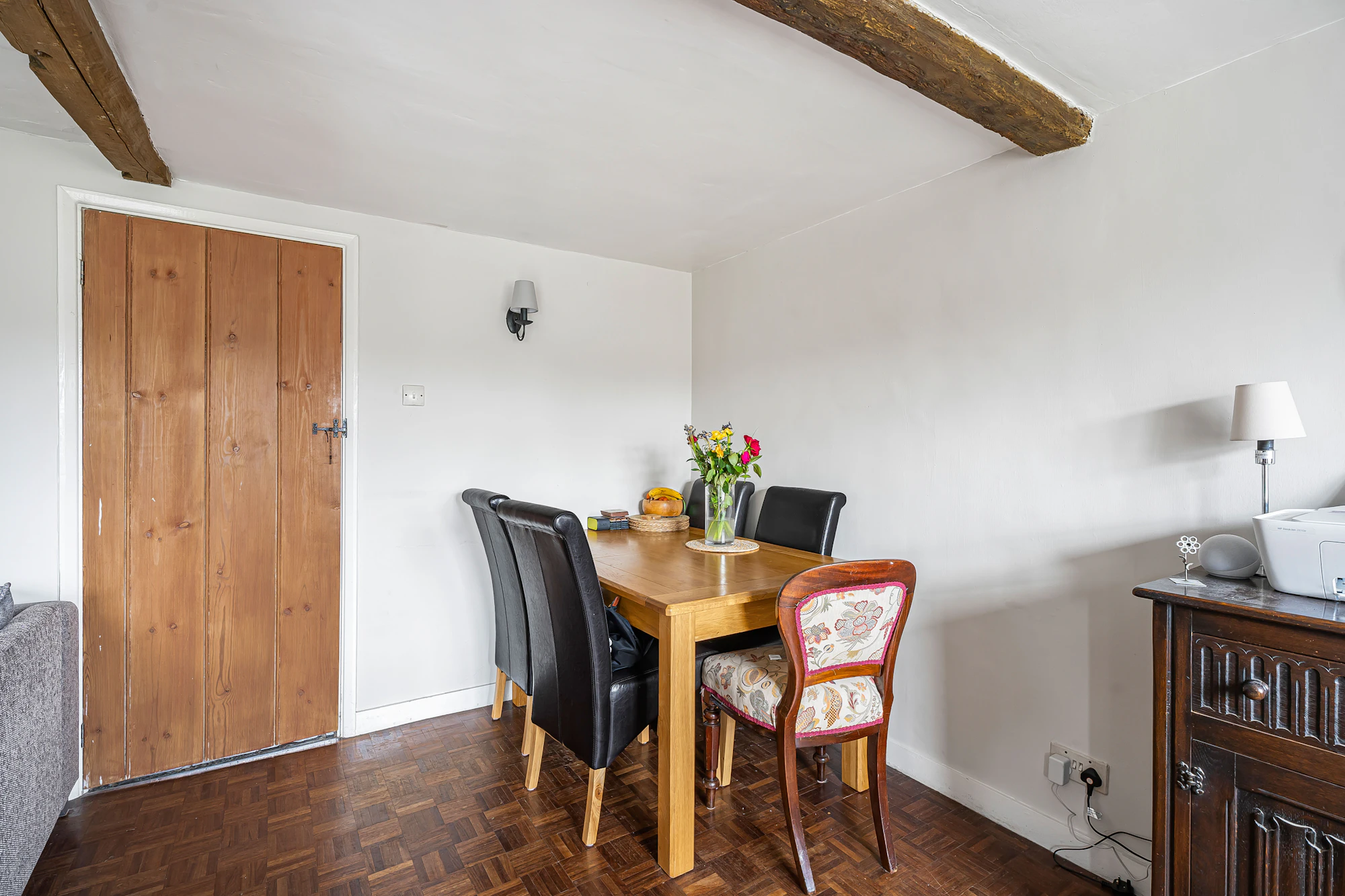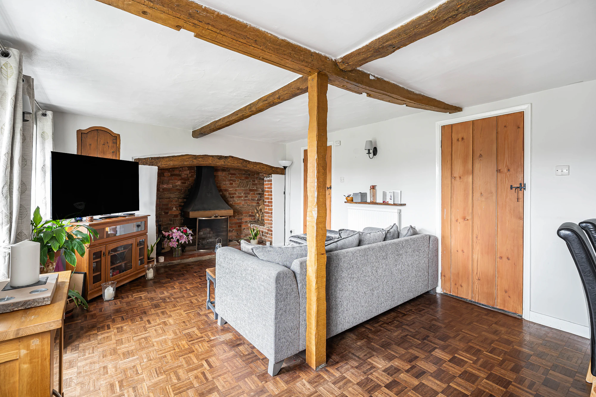 This charming period cottage is tucked away in a quiet location just off the Green in Kimpton, adjacent to and overlooking the village church. From the entrance hall there is a good sized reception room with magnificent inglenook fireplace, parquet flooring and door to the garden. The modern fitted kitchen has a gas hob, electric cooker and 'fridge. To the first floor there is a large master bedroom with beams and adjacent dressing room. There is a second double bedroom and modern bathroom with shower. Both bedrooms enjoy stunning views across rolling countryside. To the rear there is a lovely mature and secure garden with a small outhouse housing washing machine. In addition there is a small outbuilding to the rear with freezer, which could also be used as a workshop.