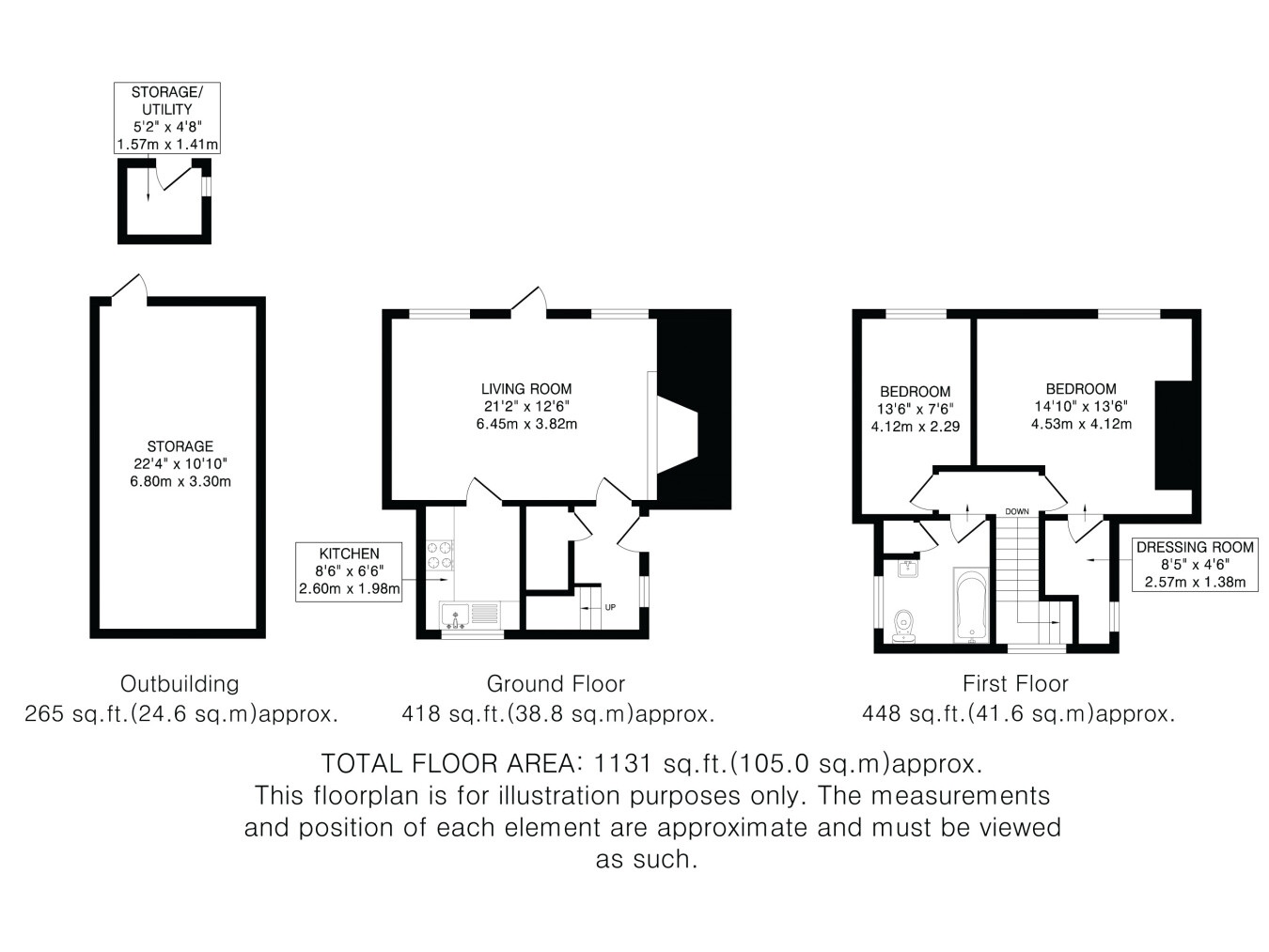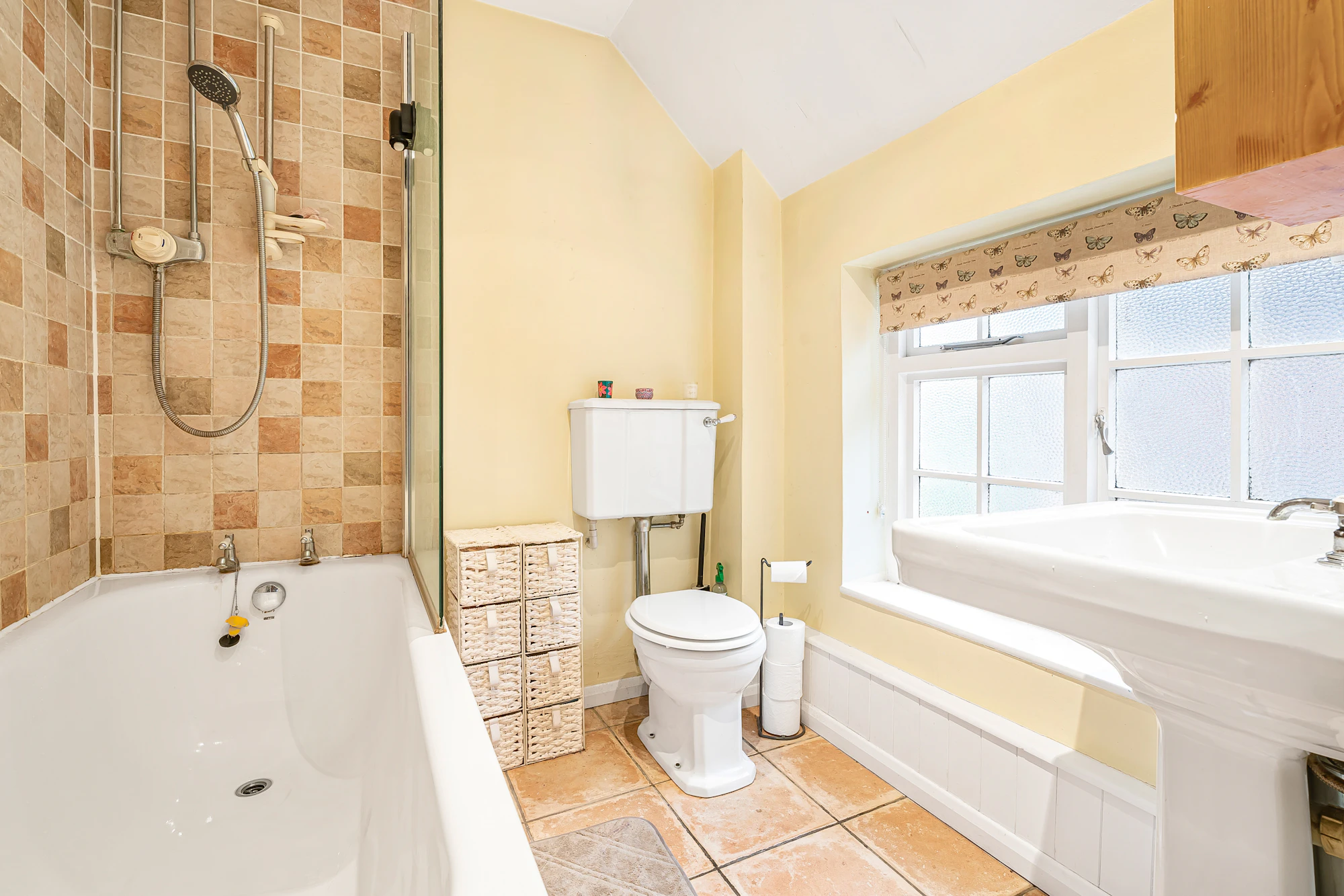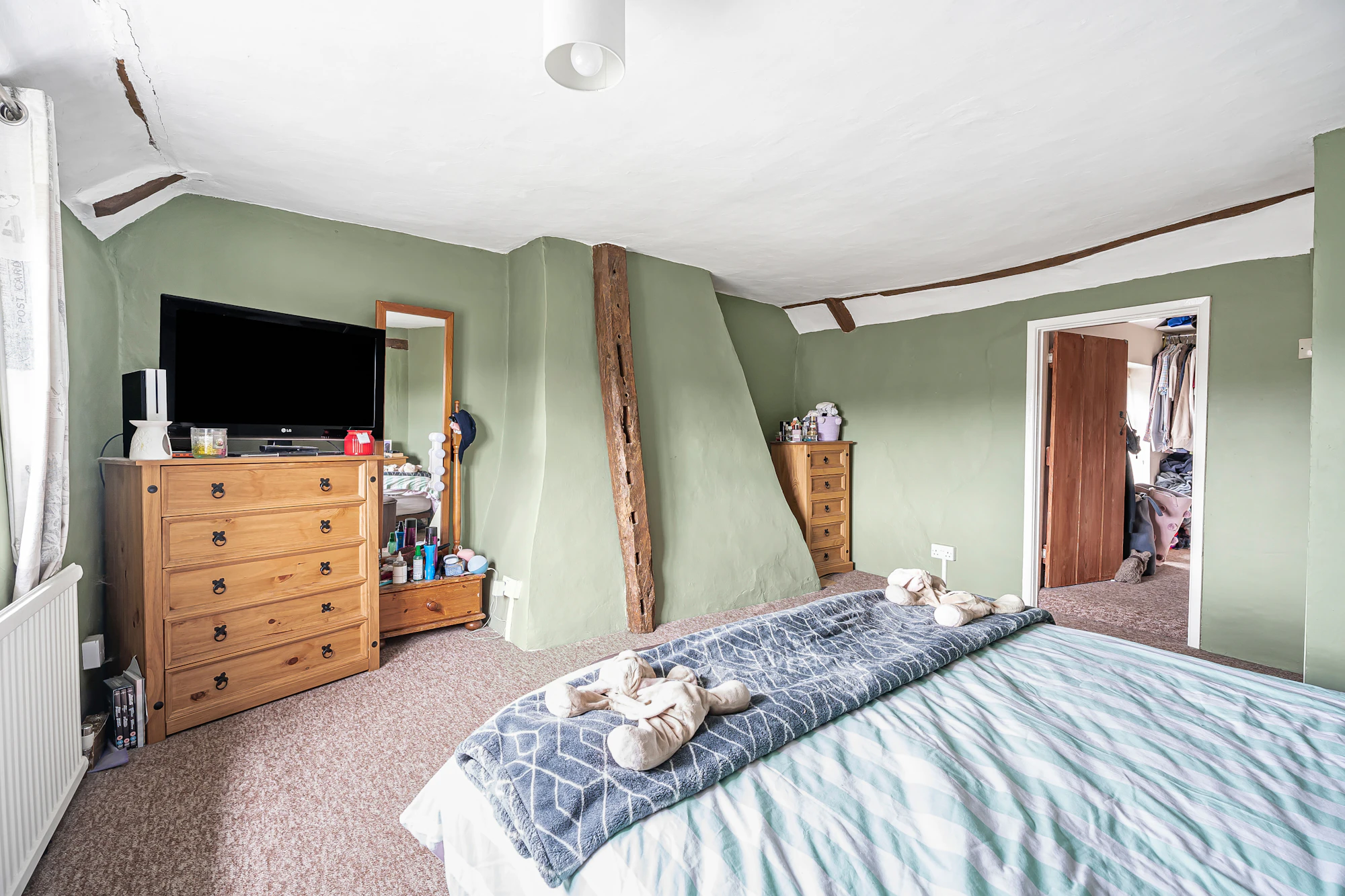 This charming period cottage is tucked away in a quiet location just off the Green in Kimpton, adjacent to and overlooking the village church. From the entrance hall there is a good sized reception room with magnificent inglenook fireplace, parquet flooring and door to the garden. The modern fitted kitchen has a gas hob, electric cooker and 'fridge. To the first floor there is a large master bedroom with beams and adjacent dressing room. There is a second double bedroom and modern bathroom with shower. Both bedrooms enjoy stunning views across rolling countryside. To the rear there is a lovely mature and secure garden with a small outhouse housing washing machine. In addition there is a small outbuilding to the rear with freezer, which could also be used as a workshop.