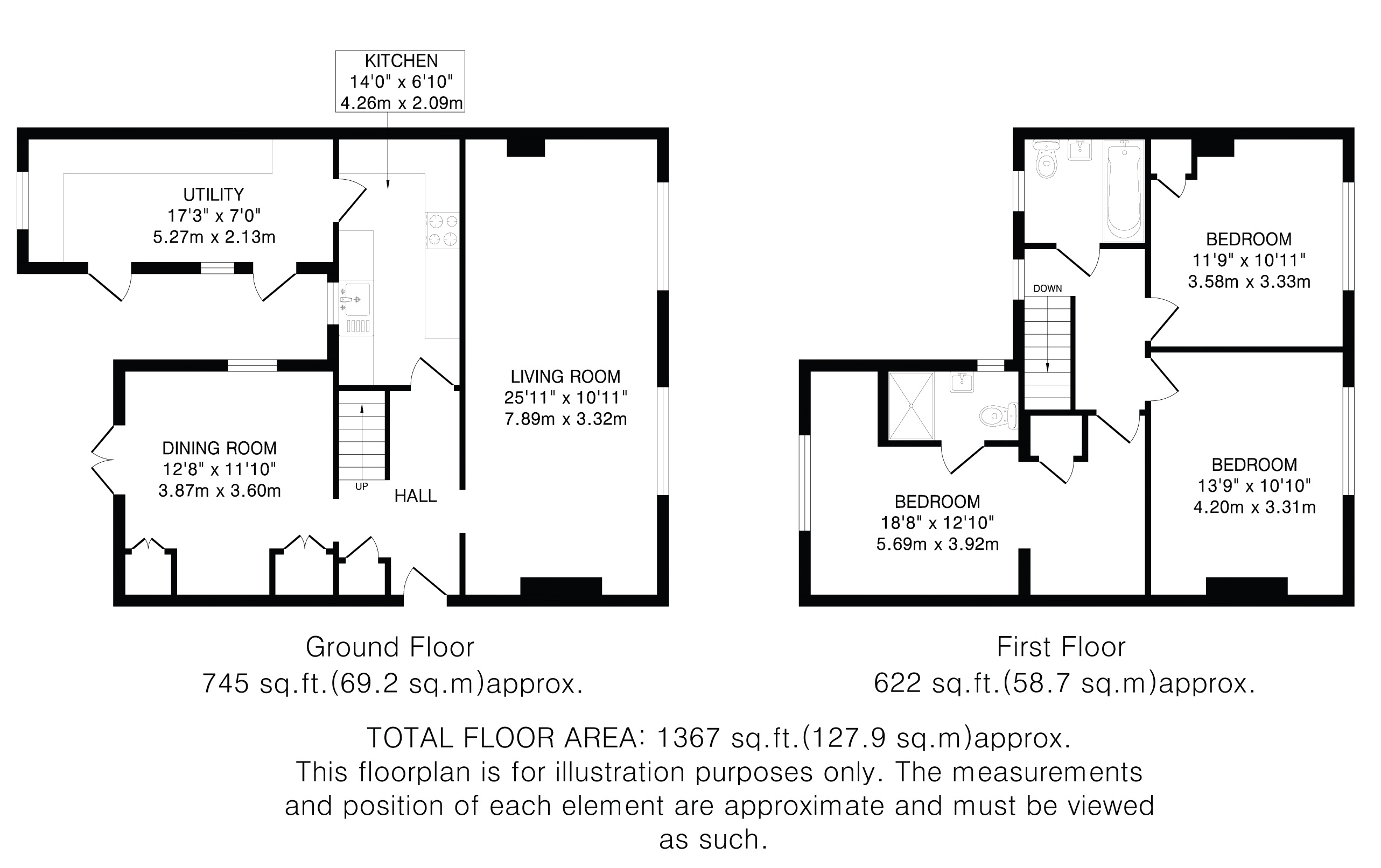The modern kitchen provides access to a practical rear storage/workshop area with space and plumbing for a washing machine and tumble dryer. The sitting room is generously sized, complete with bespoke alcove storage and a charming wood-burning stove, creating a warm and inviting atmosphere. Upstairs, there are three well-proportioned bedrooms, all serviced by a family bathroom. The principal bedroom also benefits from space for wardrobes and its own en-suite shower room.