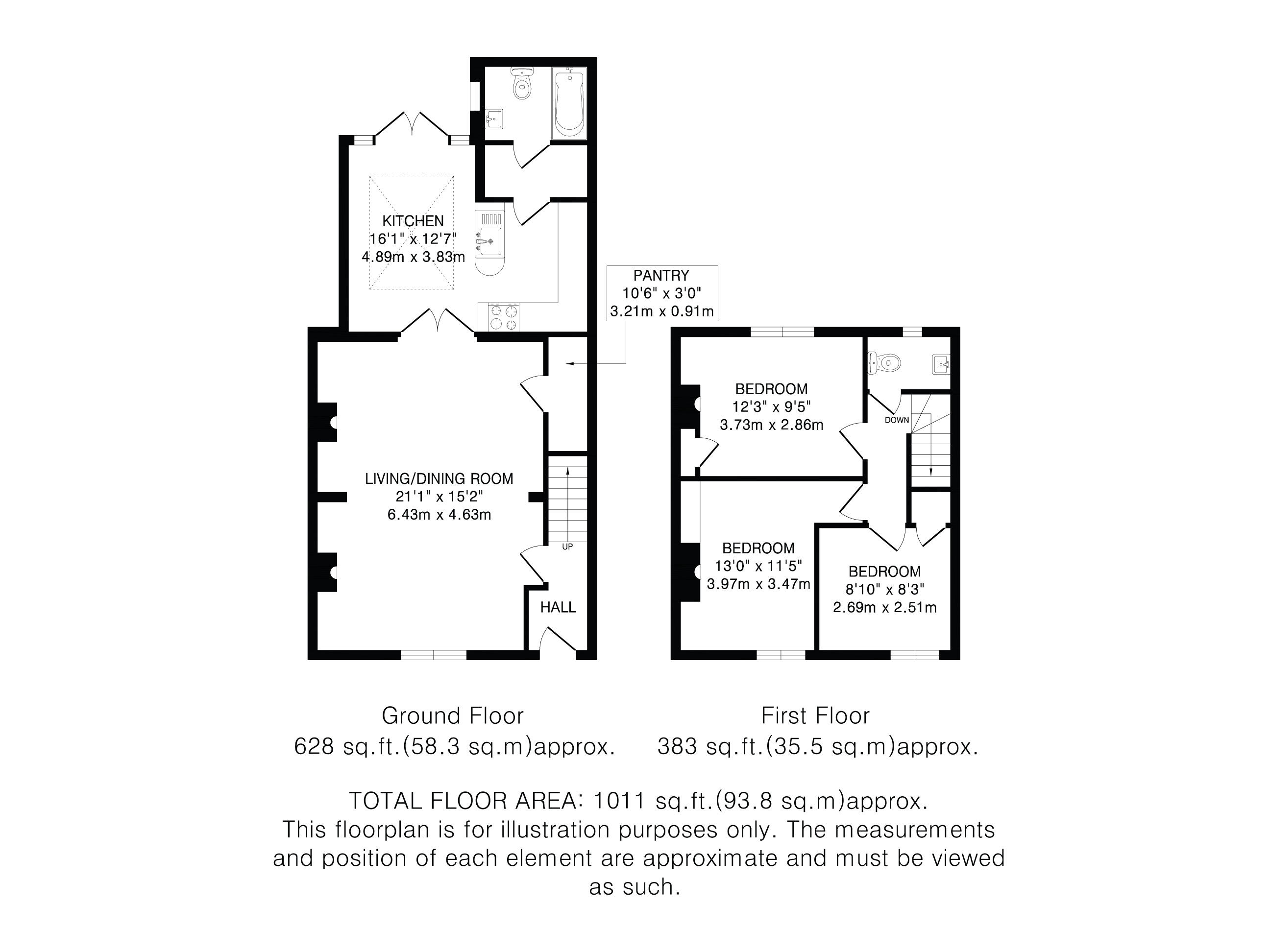 The accommodation begins with a welcoming entrance hall leading into a stunning 21ft open-plan living/dining room, featuring twin fireplaces and a useful understairs cupboard. This flows into a bright kitchen/breakfast room with a part conservatory-style roof and double doors opening onto the rear garden. The ground floor also includes a family bathroom.
