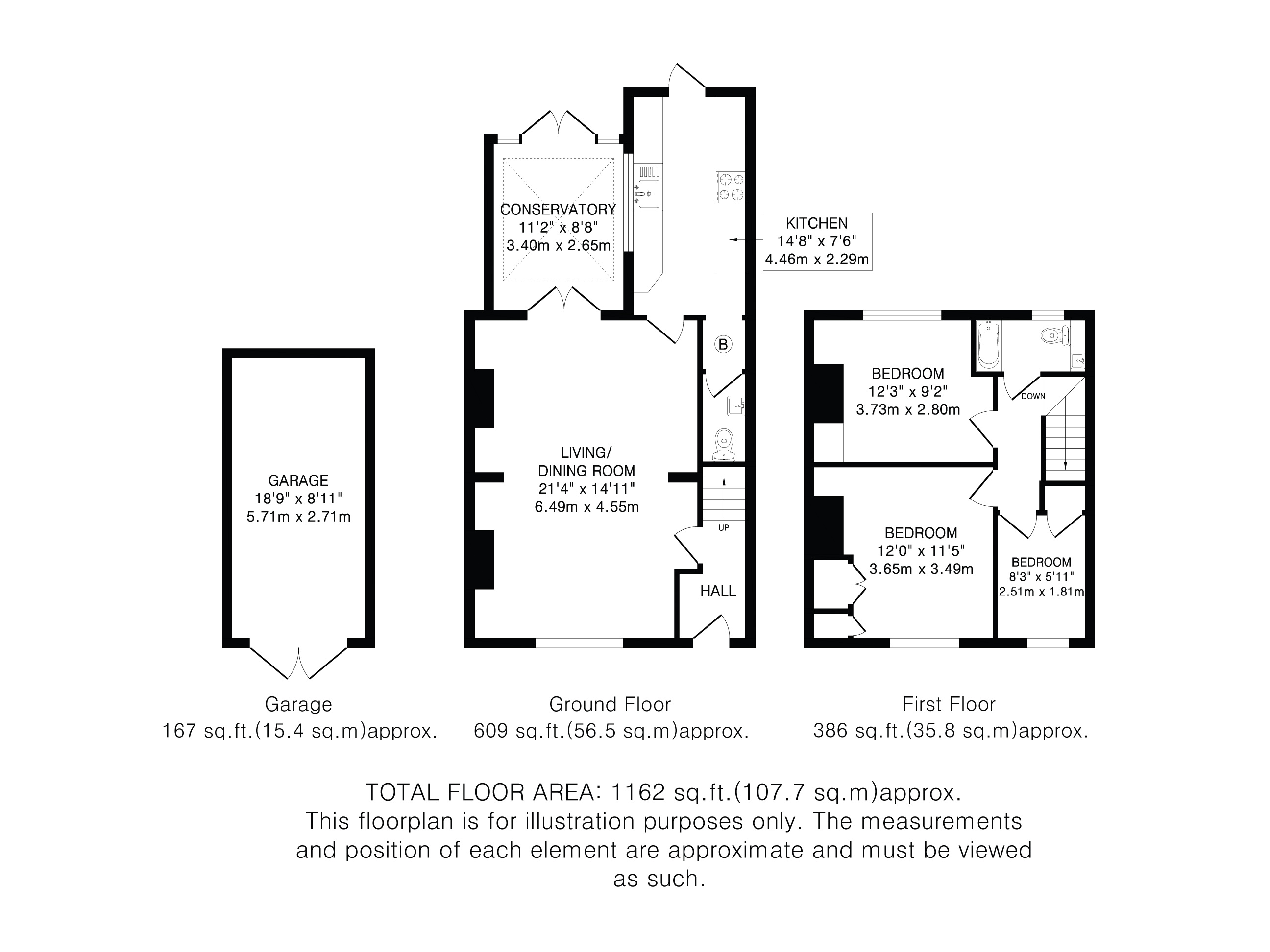 Upstairs, the property boasts three well-proportioned bedrooms, including two generous doubles and a comfortable single, all served by a contemporary family bathroom with sleek finishes and fittings.