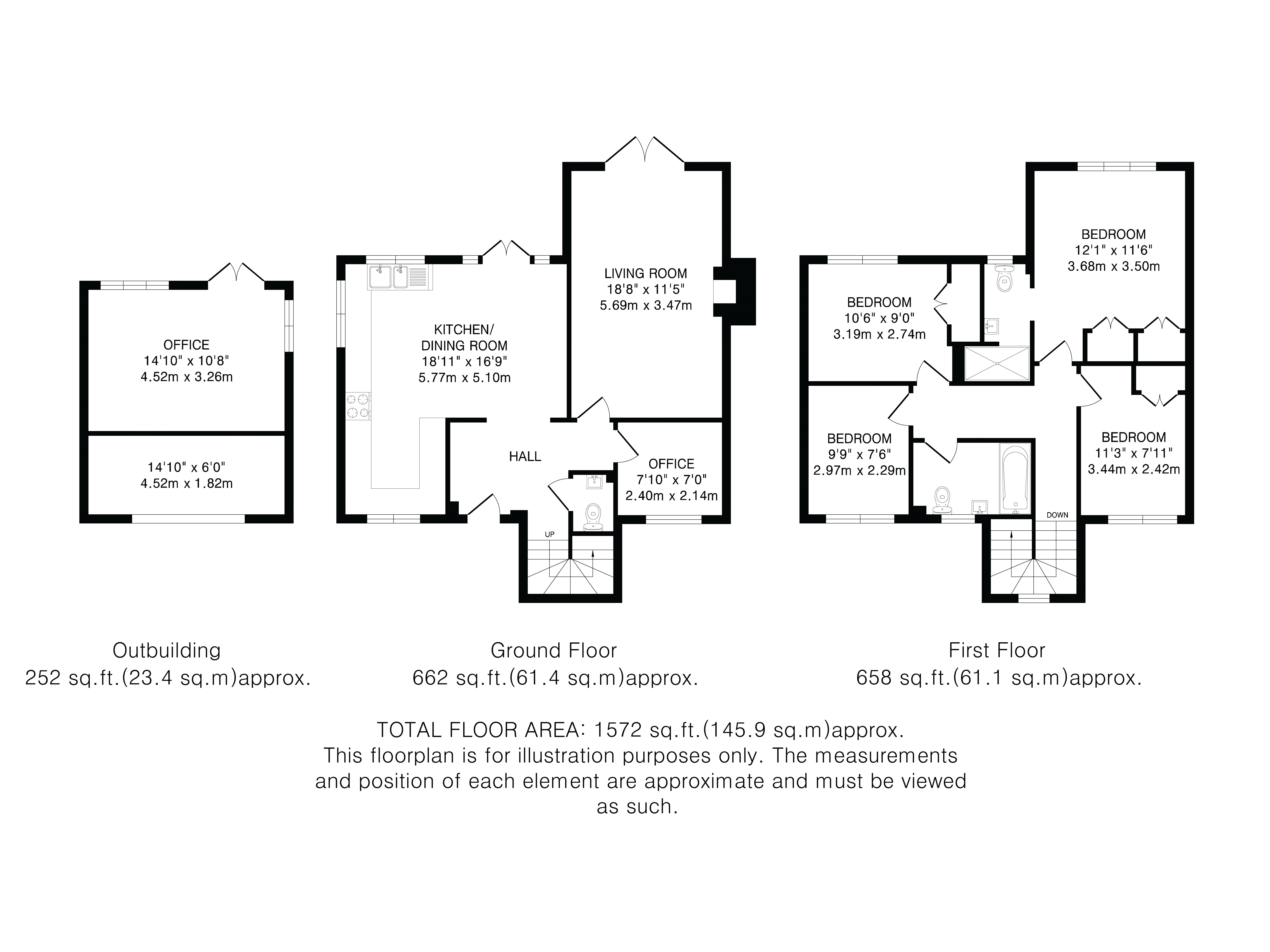 The generous living room enjoys views over the garden and is flooded with natural light, offering a warm and inviting atmosphere. A feature log burner provides a cosy focal point for cooler evenings, making it the perfect space to relax and unwind. Completing the ground floor is a separate home office, perfect for remote working, and a convenient downstairs cloakroom.