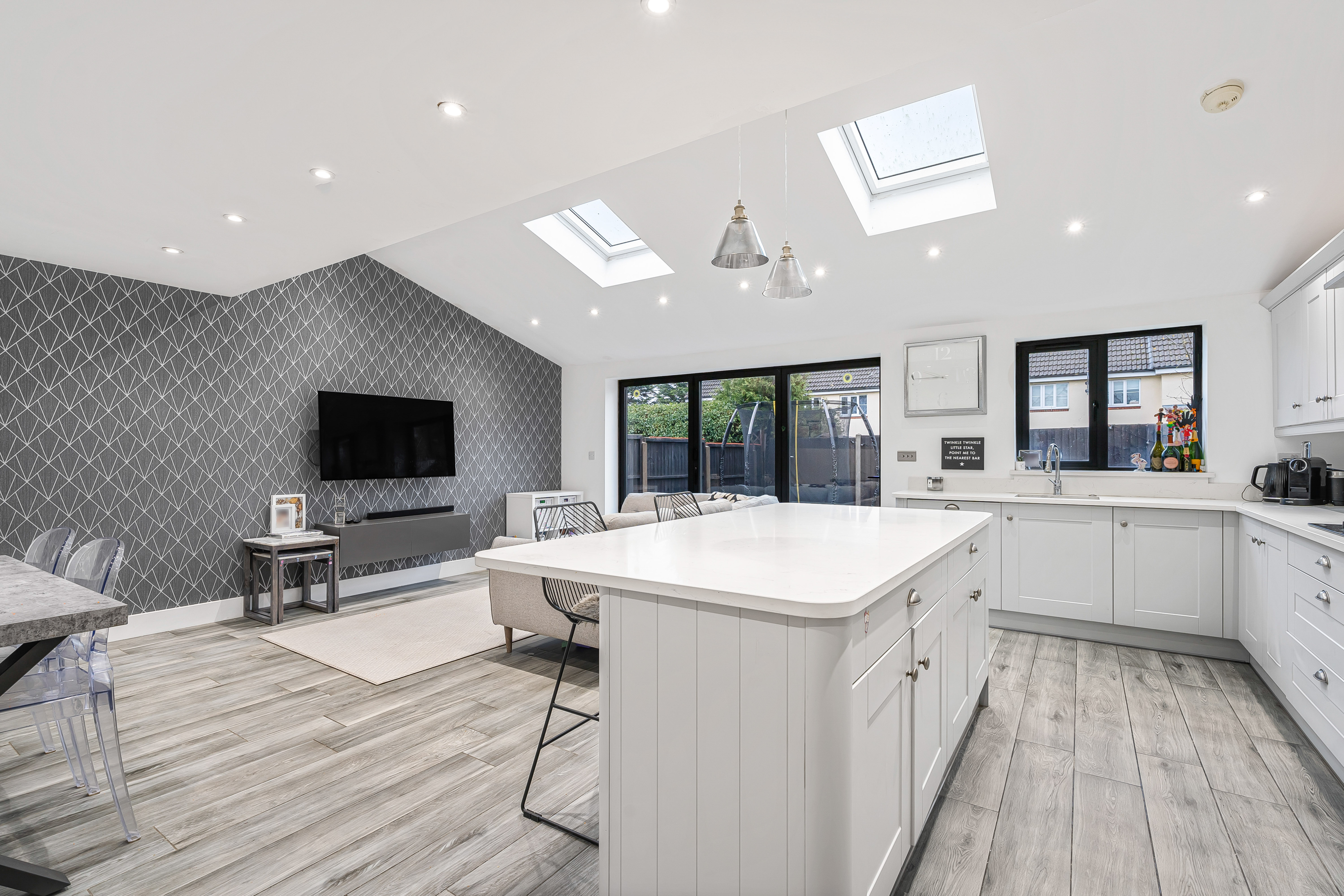A welcoming entrance hall leads to a generous living room at the front of the property, offering a bright and comfortable space to relax. To the rear, the impressive open-plan kitchen/dining/family room is the true heart of the home, perfect for entertaining or family life with stylish fittings, ample storage and bi-folding doors opening onto the garden. A newly fitted ground floor shower room adds further convenience.