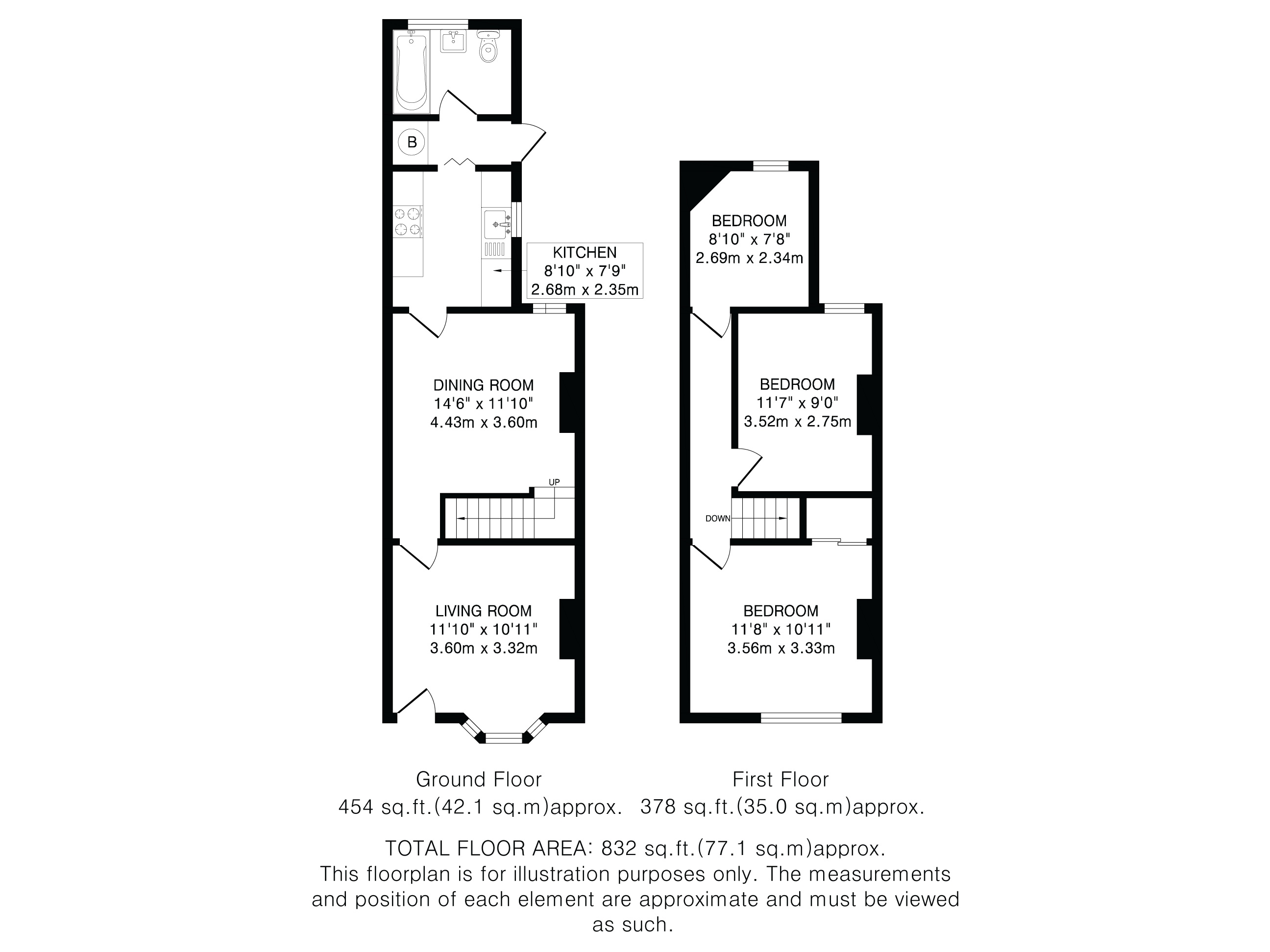 Upstairs, the property offers two generous double bedrooms and a third slightly smaller bedroom.