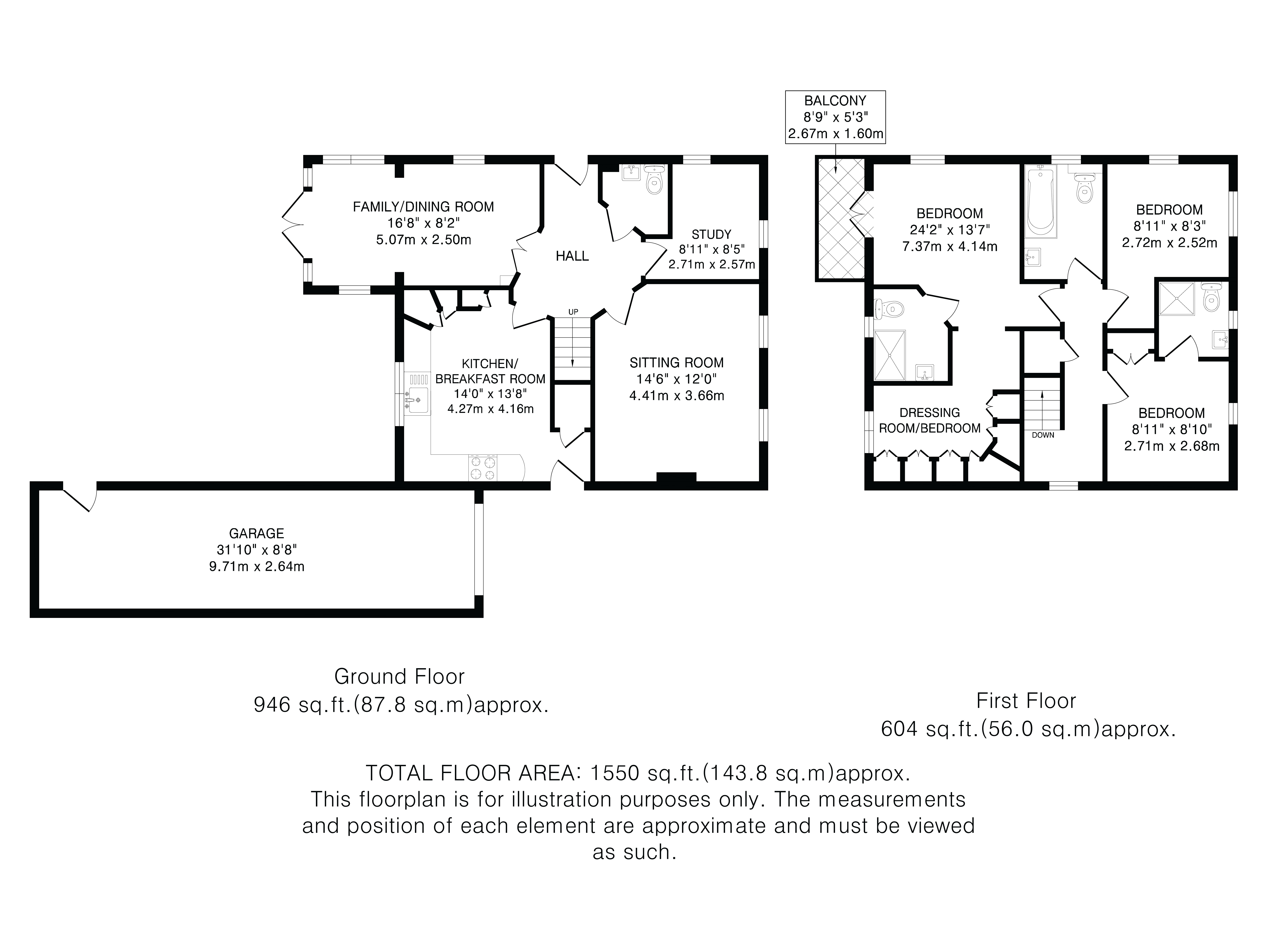 Upstairs, the original layout provided four bedrooms. The current owners have reconfigured one bedroom to create a dressing room, which now opens into an impressive principal bedroom. This principal suite benefits from fitted wardrobes, an en-suite shower room, and a private balcony that makes the most of the beautiful countryside views. The dressing room could easily be reinstated as a fourth bedroom, as the original door from the landing remains; this would simply require the reinstatement of a partition wall and removal of the fitted wardrobes if desired.