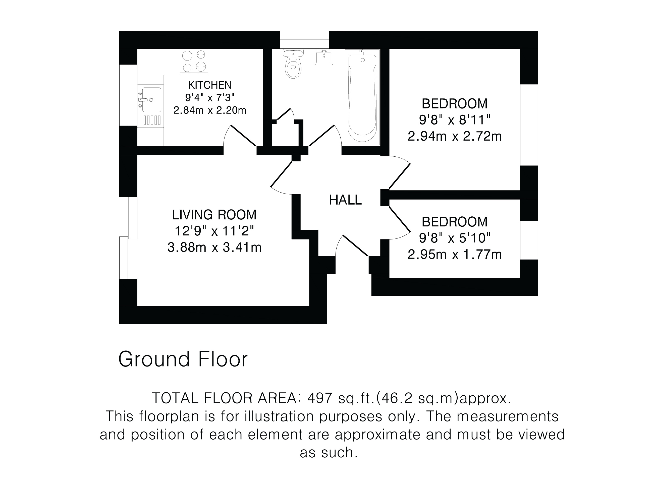 Upon entering the property, you are welcomed into a central hallway providing access to two bedrooms and a modern bathroom, before leading through to a bright and spacious living area. The living room forms the heart of the home and benefits from an abundance of natural light, enhanced by sliding doors that open directly onto a pleasant green space.