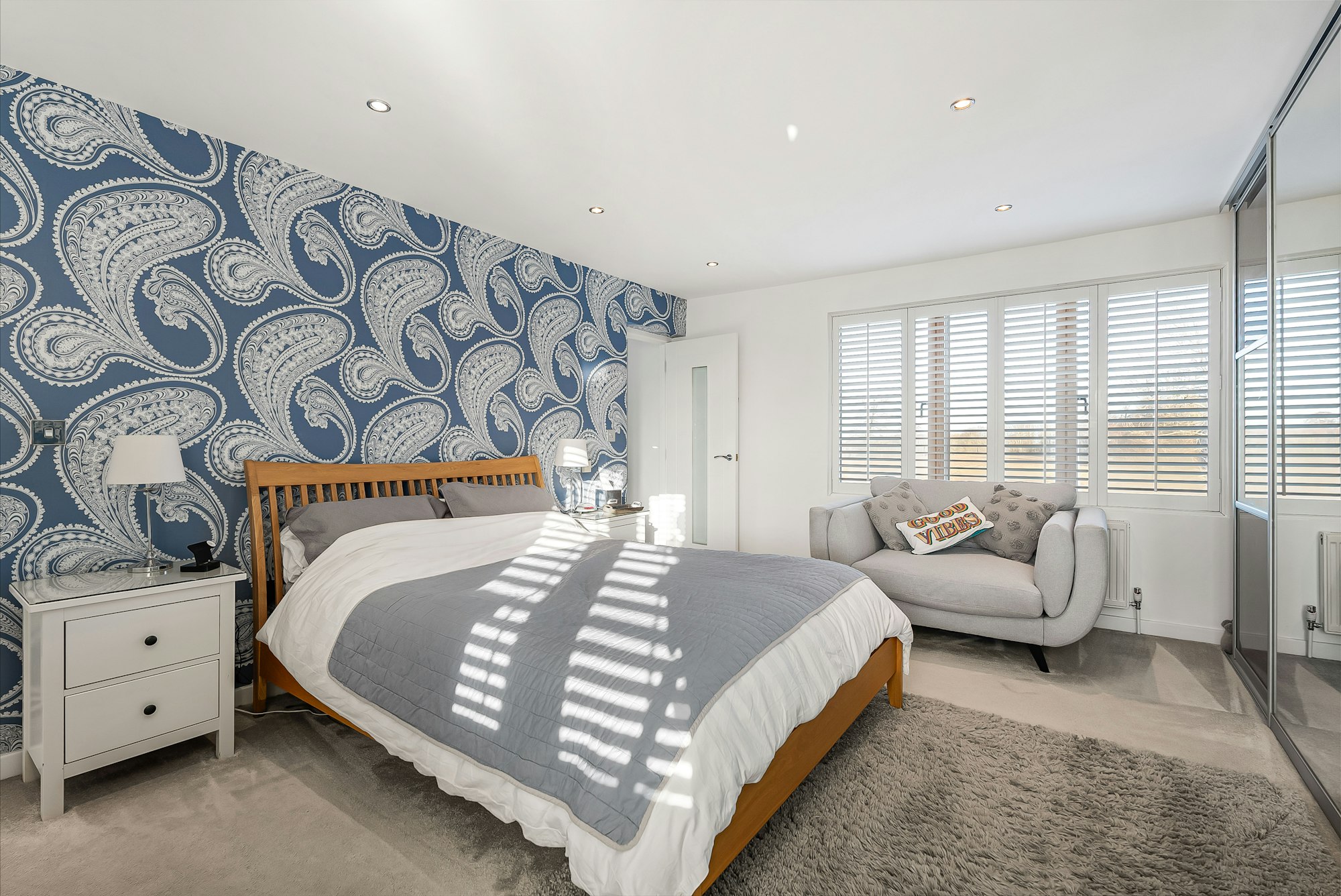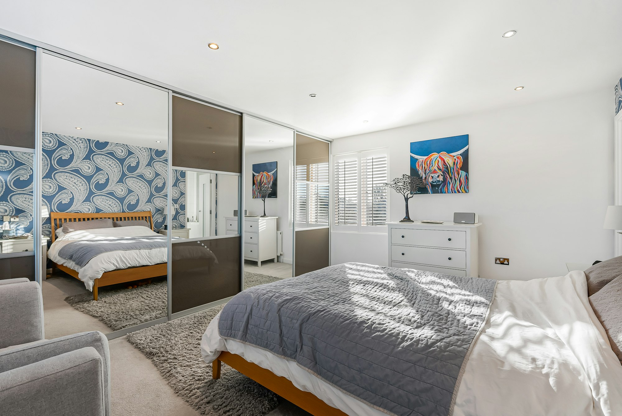 On the first floor, there are four double bedrooms. The dual-aspect principal bedroom benefits from fitted wardrobes and a stylish four-piece en-suite bathroom. The remaining bedrooms are served by a modern family bathroom, with the rear bedrooms enjoying delightful views over Priory Fields.
