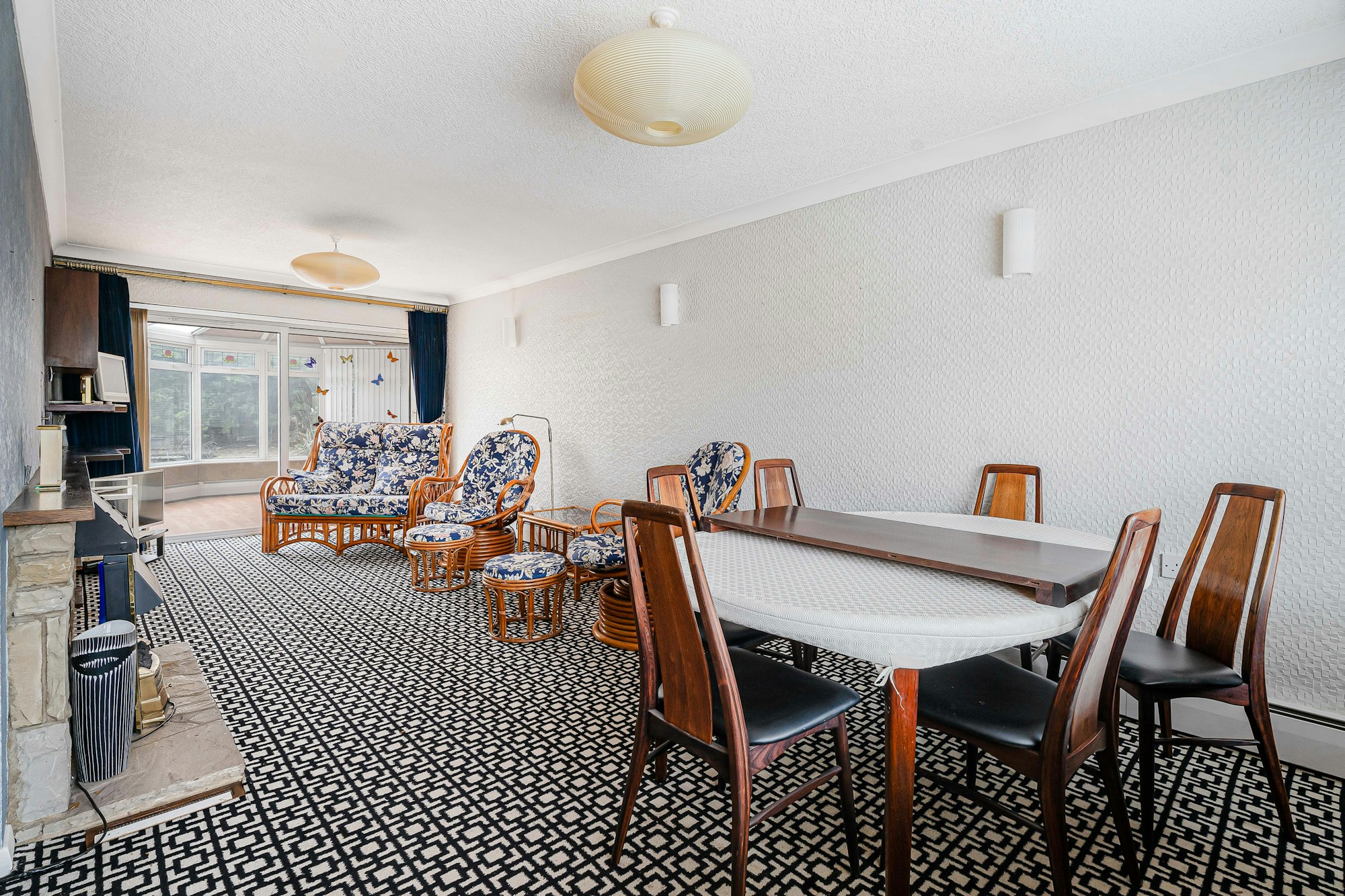 The property is currently arranged as a three-bedroom home. You enter via a porch, which leads into a welcoming entrance hall. From here, you step into a generous open-plan living and dining room, a bright and versatile space that flows seamlessly into the conservatory, enjoying views over the rear garden.