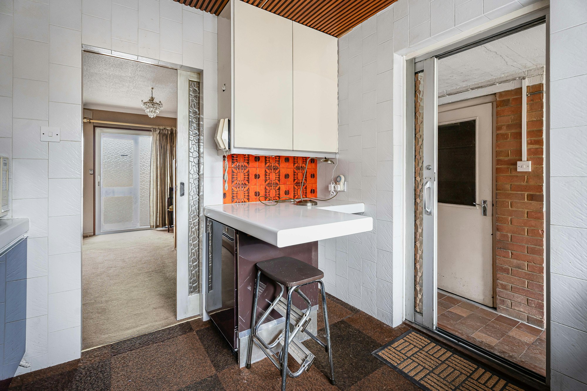 To the rear of the property is a kitchen/breakfast room, offering further potential for reconfiguration or extension, subject to the necessary permissions. The kitchen leads to a side passageway, formerly the old coal shed, which now incorporates a W.C. and provides access to the single garage. From here, there are doors leading both to the front of the property and out to the rear garden.