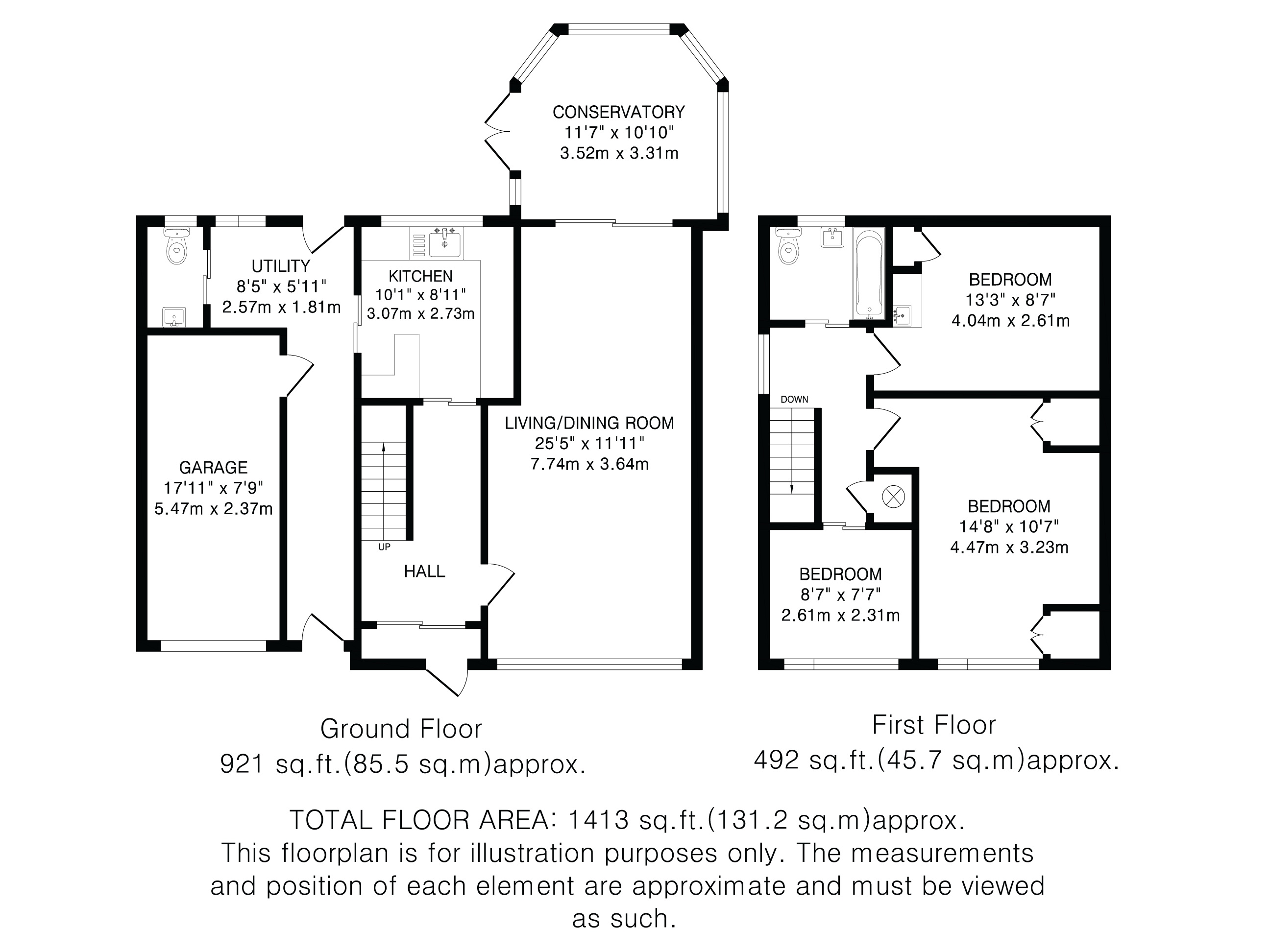 Upstairs, the landing gives access to a family bathroom, two well-proportioned double bedrooms, and a good-sized single bedroom.