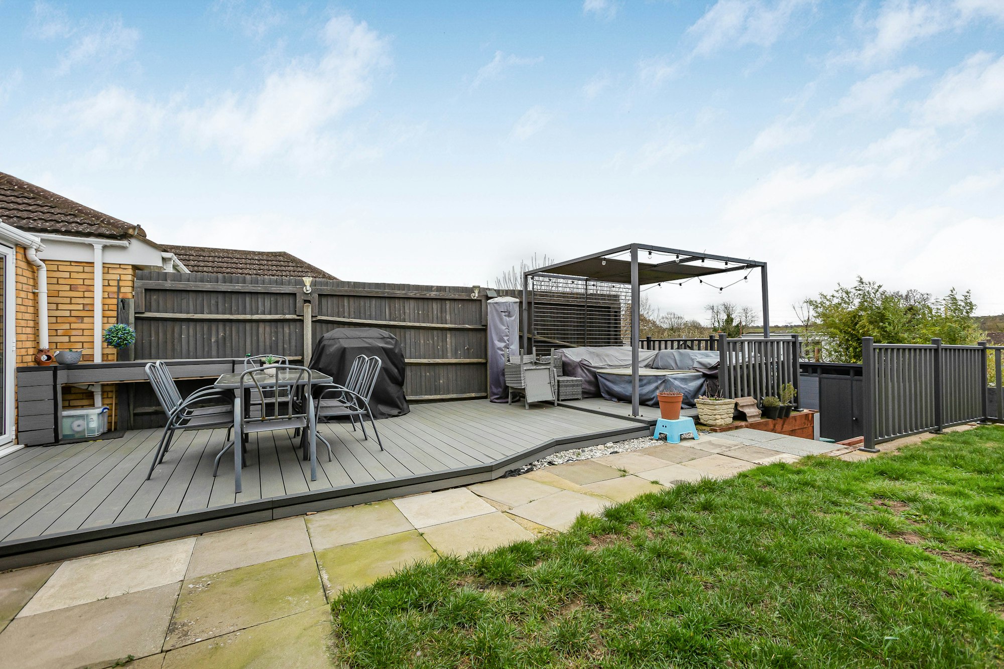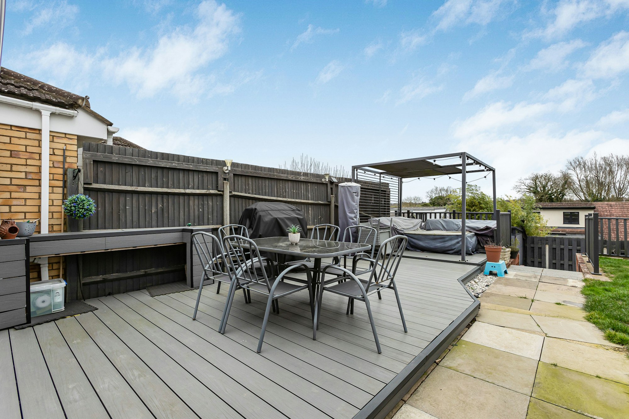 Externally, the property benefits from a resin driveway providing off-street parking. The attractive south-facing rear garden enjoys a decked seating area and lawn, with steps leading down to a further patio an ideal setting for relaxing, dining, or entertaining.