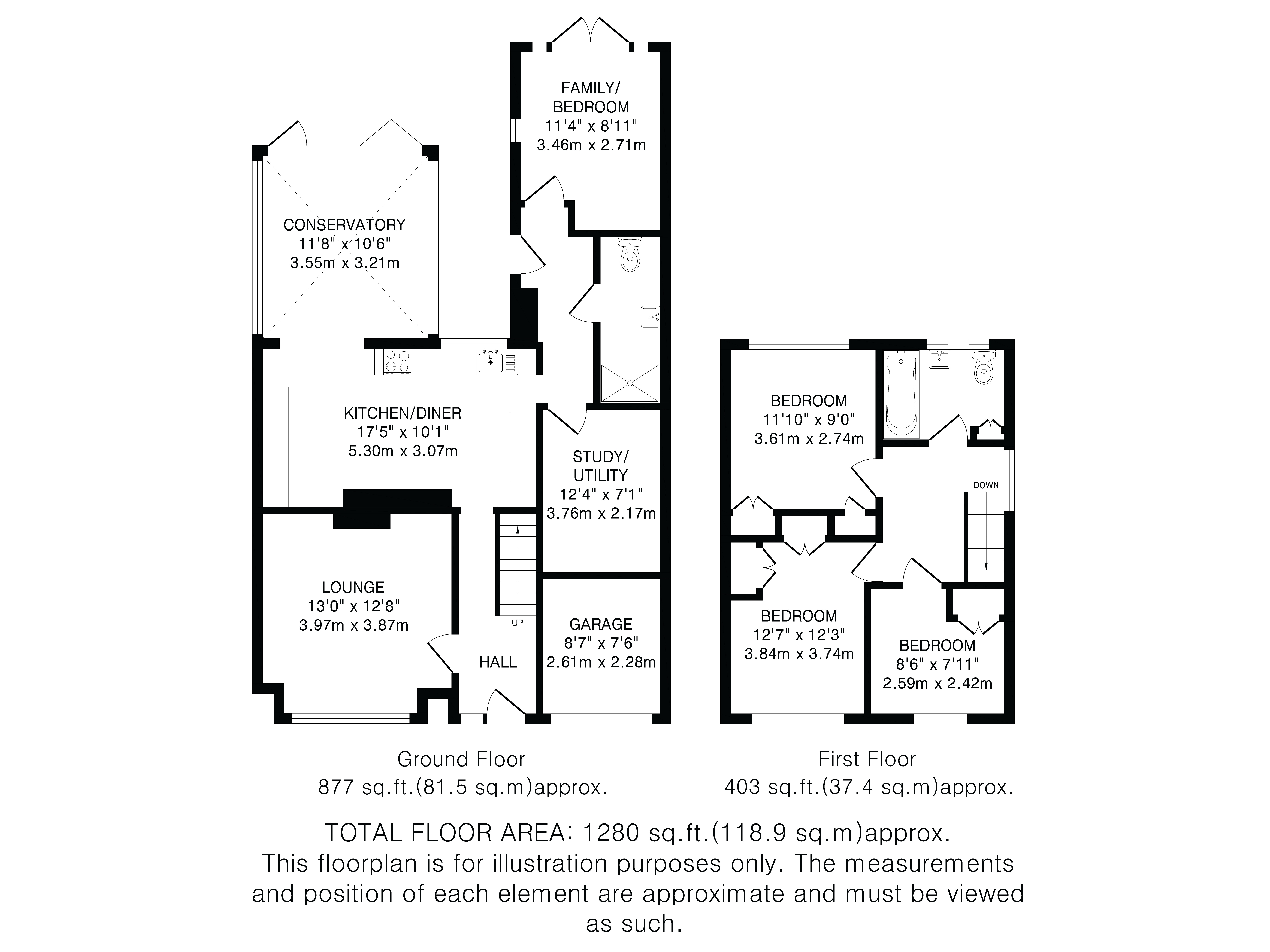 The former garage has been thoughtfully reconfigured to maximise versatility. It retains useful storage space to the front, while the remainder has been partially converted and extended to provide a generous study/utility, a contemporary downstairs shower room, and an additional family room or fourth bedroom with double doors opening onto the garden.
