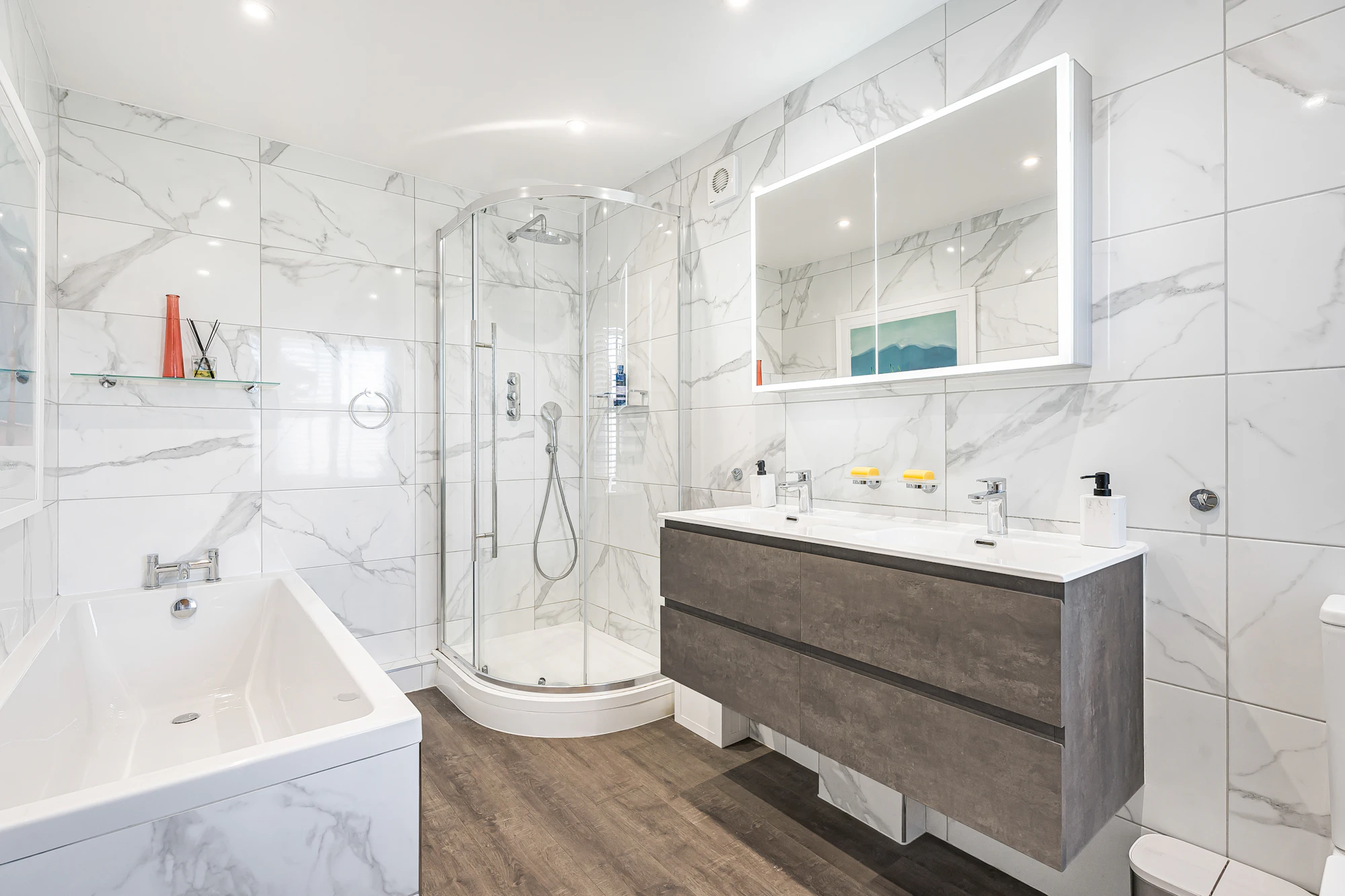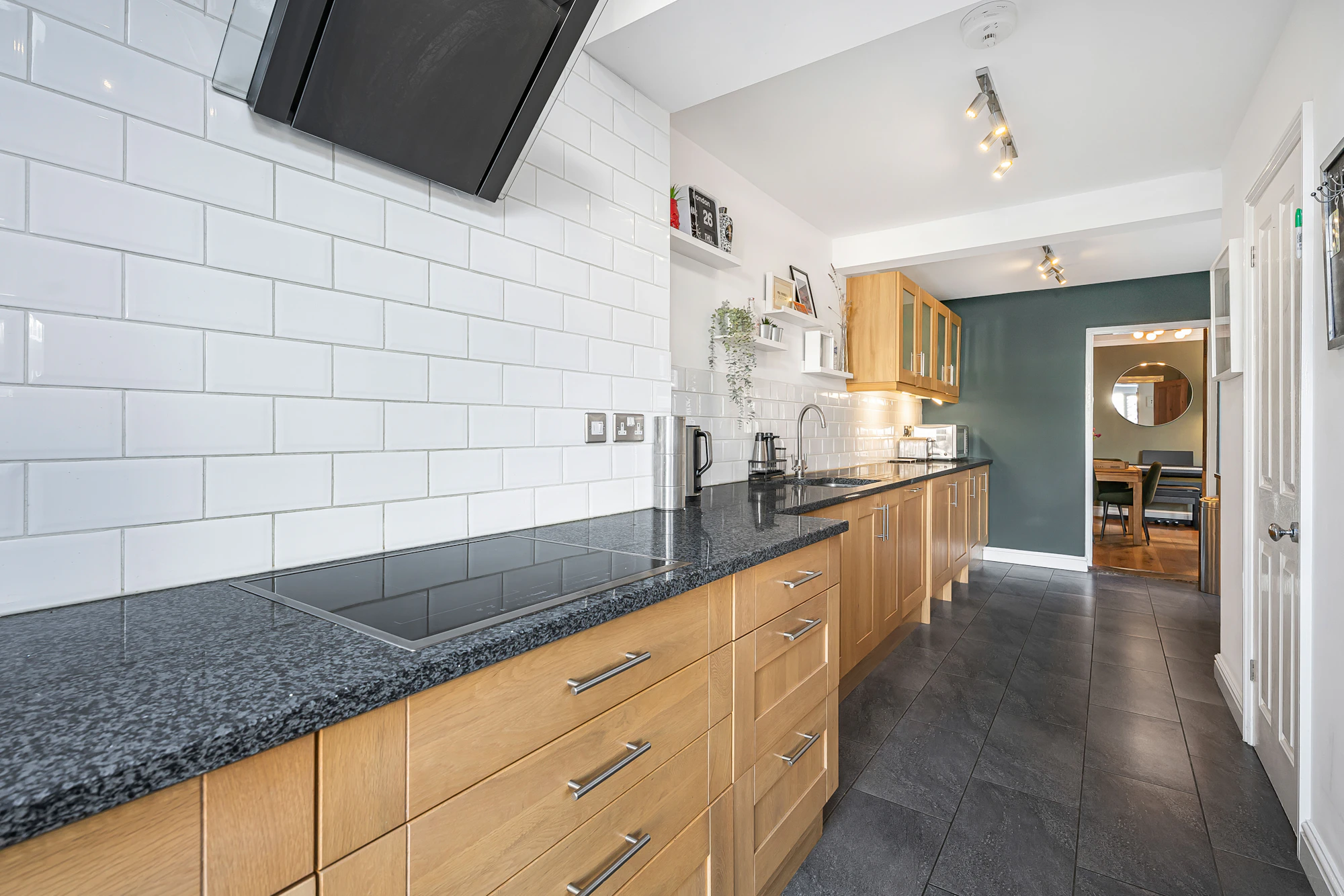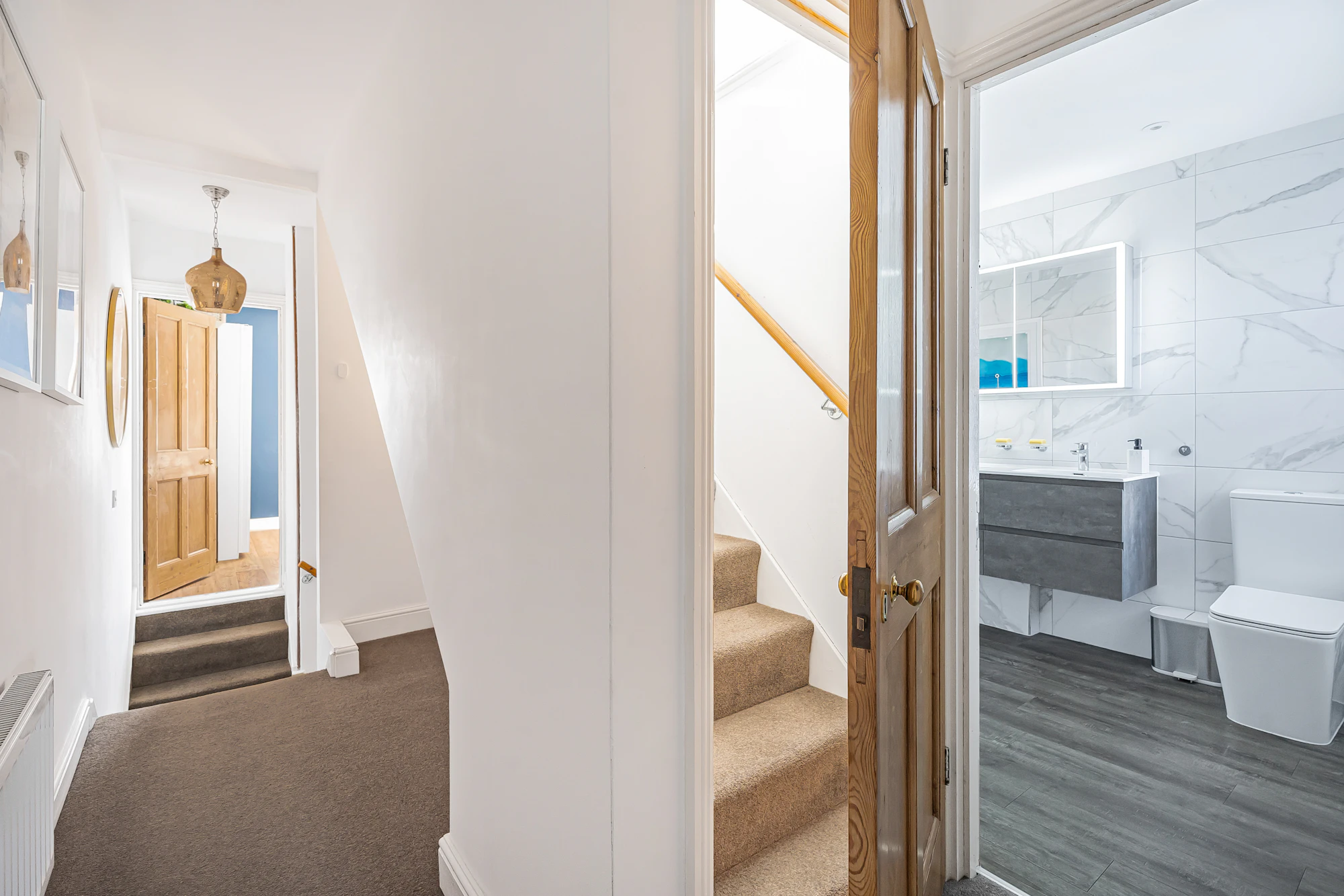 On the first floor, there are two well-proportioned double bedrooms and a spacious landing with a practical under-stairs alcove ideal for storage. The family bathroom is particularly impressive, finished to a high standard and featuring a stylish four-piece suite.
