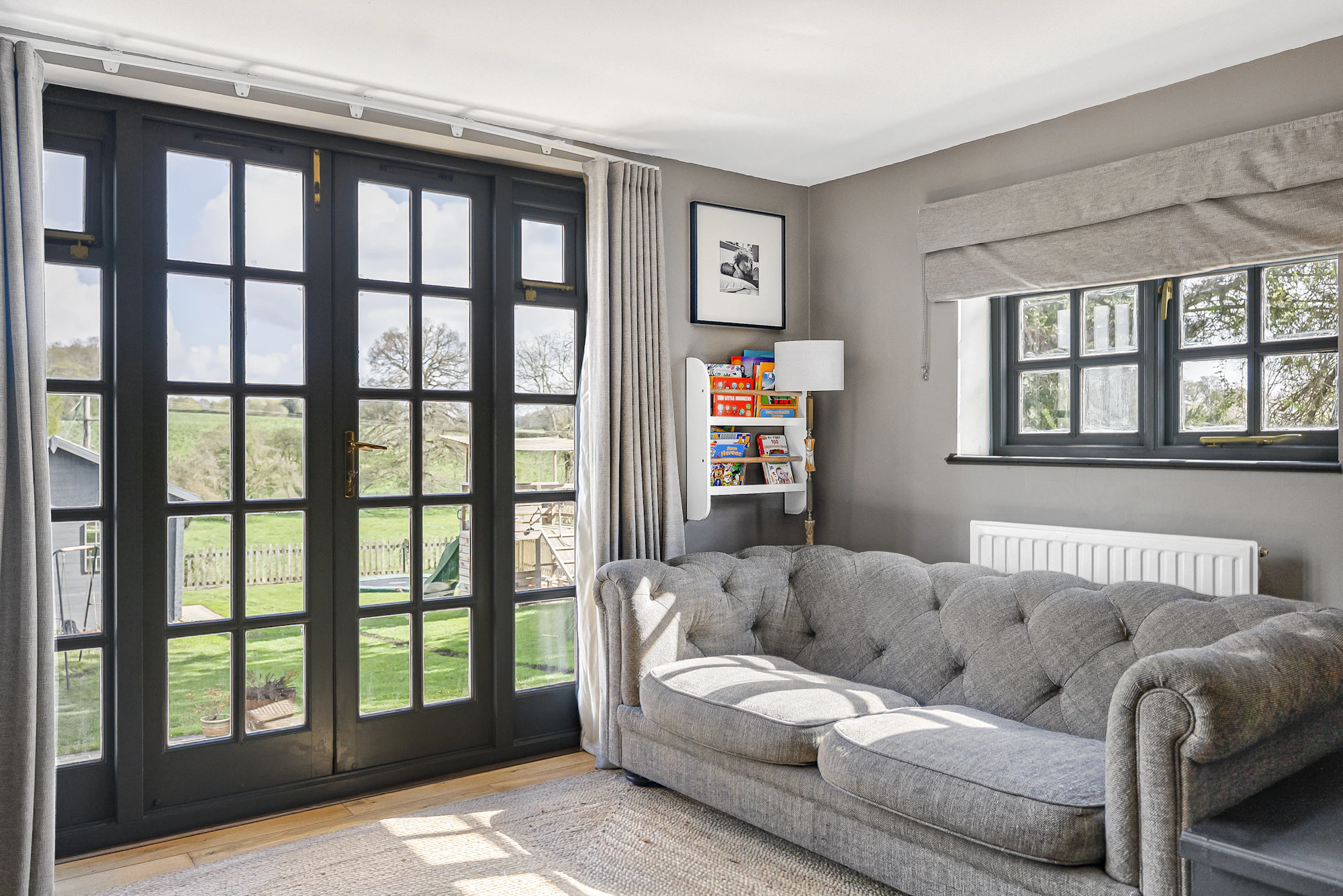 The second outbuilding, positioned closer to the house, is currently arranged as a home office, making it ideal for remote working.
