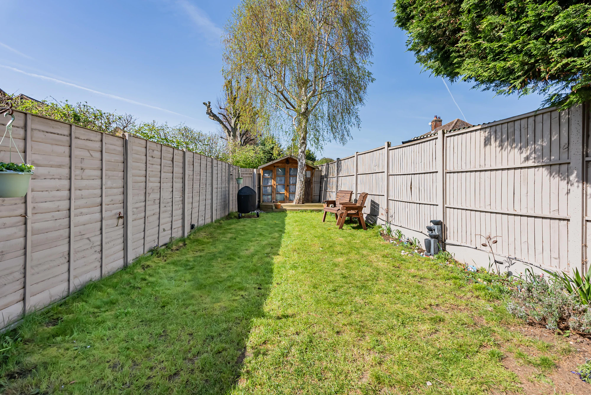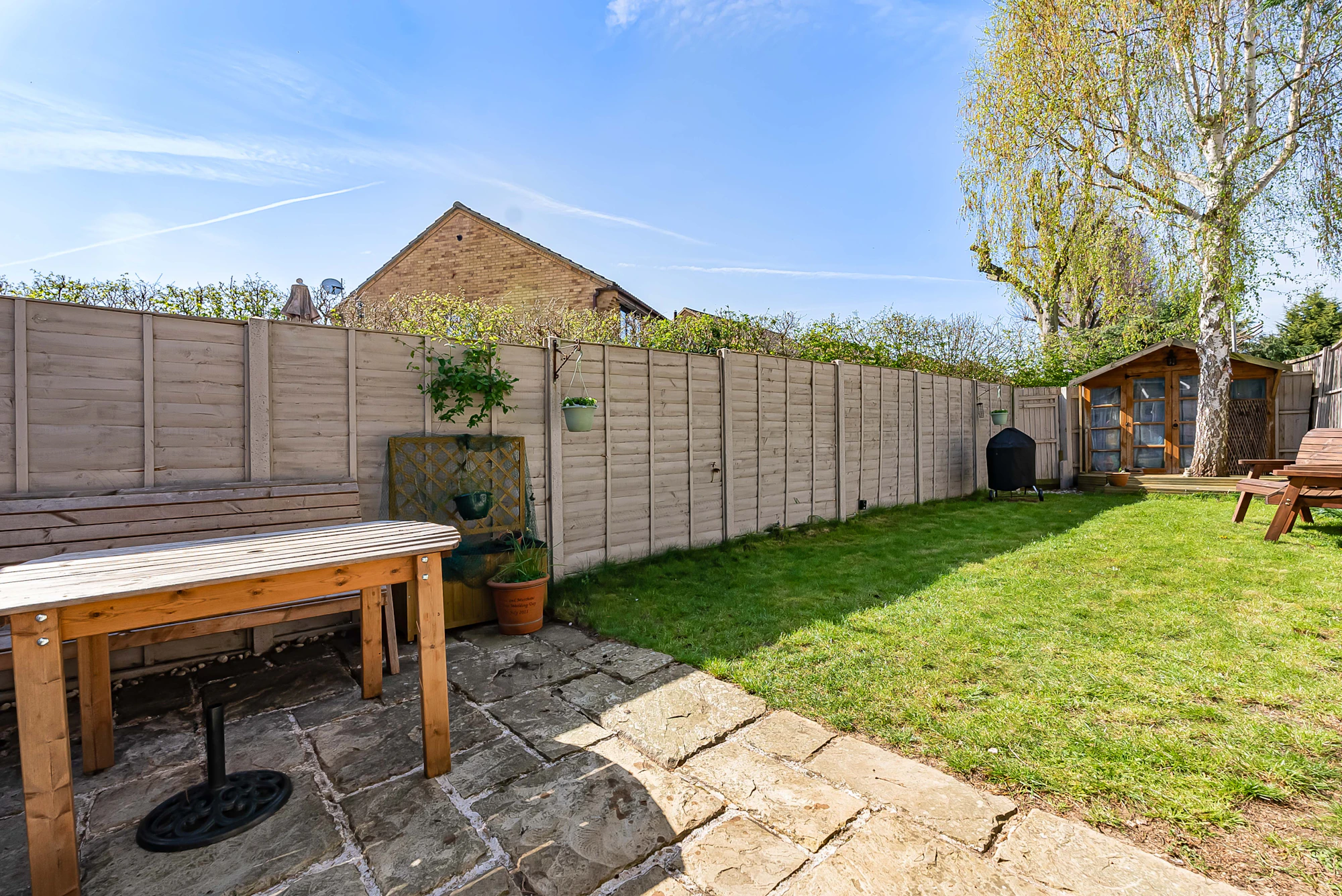 Outside, the front of the property benefits from a block-paved driveway providing off-road parking for several vehicles, alongside a neatly maintained lawn. The rear garden features a patio area, lawn, and a selection of established plants, shrubs and trees, with a useful wooden shed positioned at the rear.