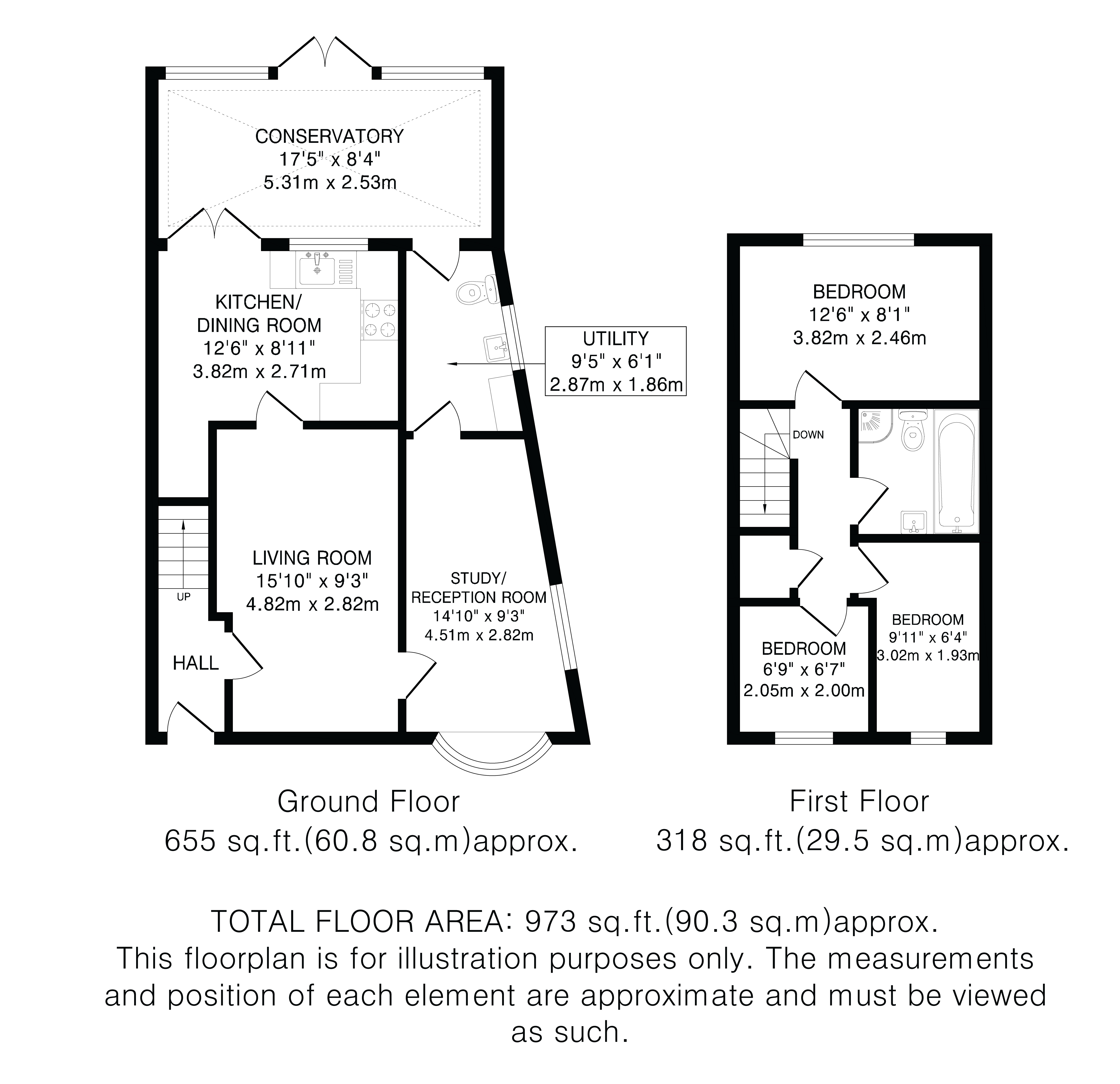 You enter into a small hallway that leads through to a spacious sitting room at the front of the property, featuring a bay window that allows for plenty of natural light. To the right-hand side of the sitting room is the extended section of the house, currently arranged as a study and guest bedroom, offering flexible and versatile living space to suit a variety of needs. From here, there is access to a practical utility room and separate W.C., which in turn lead into the conservatory overlooking the garden — an ideal space to relax and enjoy the outlook. The kitchen/dining room is fully functional and well proportioned, with clear potential for modernisation should a buyer wish to further enhance the space.