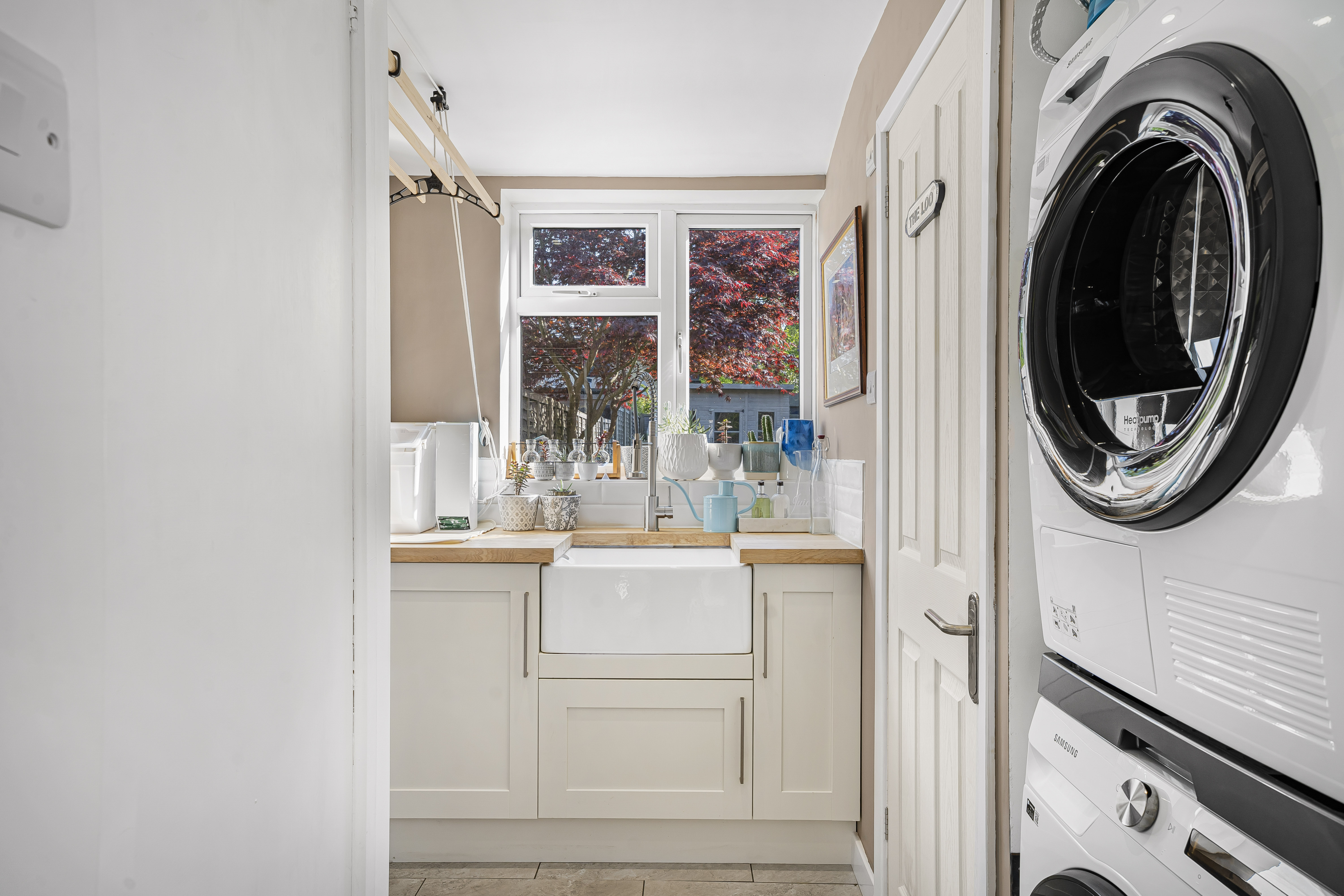 The home effortlessly blends characterful period details with modern, stylish enhancements, offering a welcoming and versatile living environment. Stepping inside, you are greeted by a light-filled, open-plan lounge and dining room, which leads seamlessly into a sleek, contemporary kitchen. The ground floor also benefits from a cloakroom and a separate utility room with views across the rear garden.
