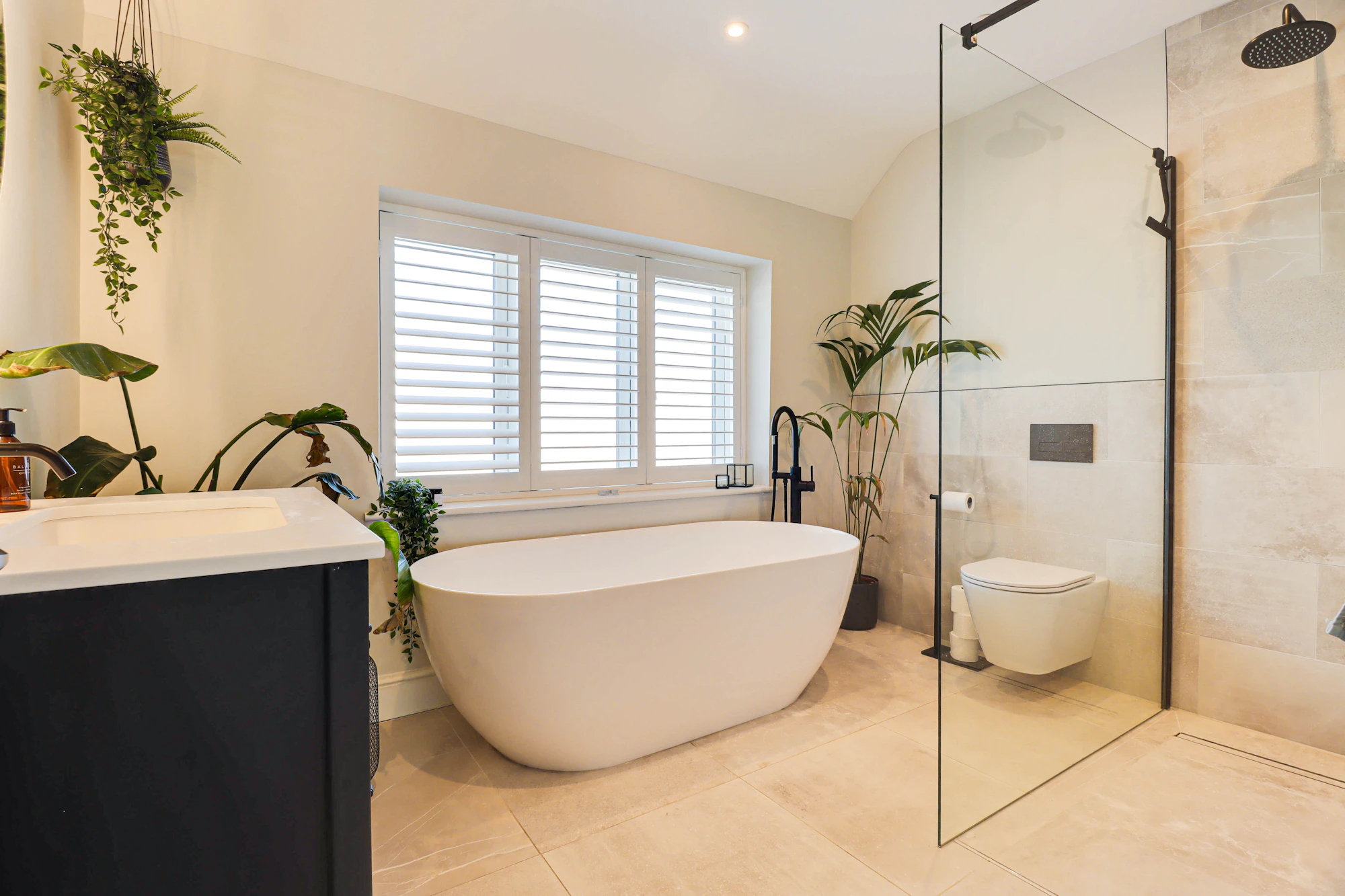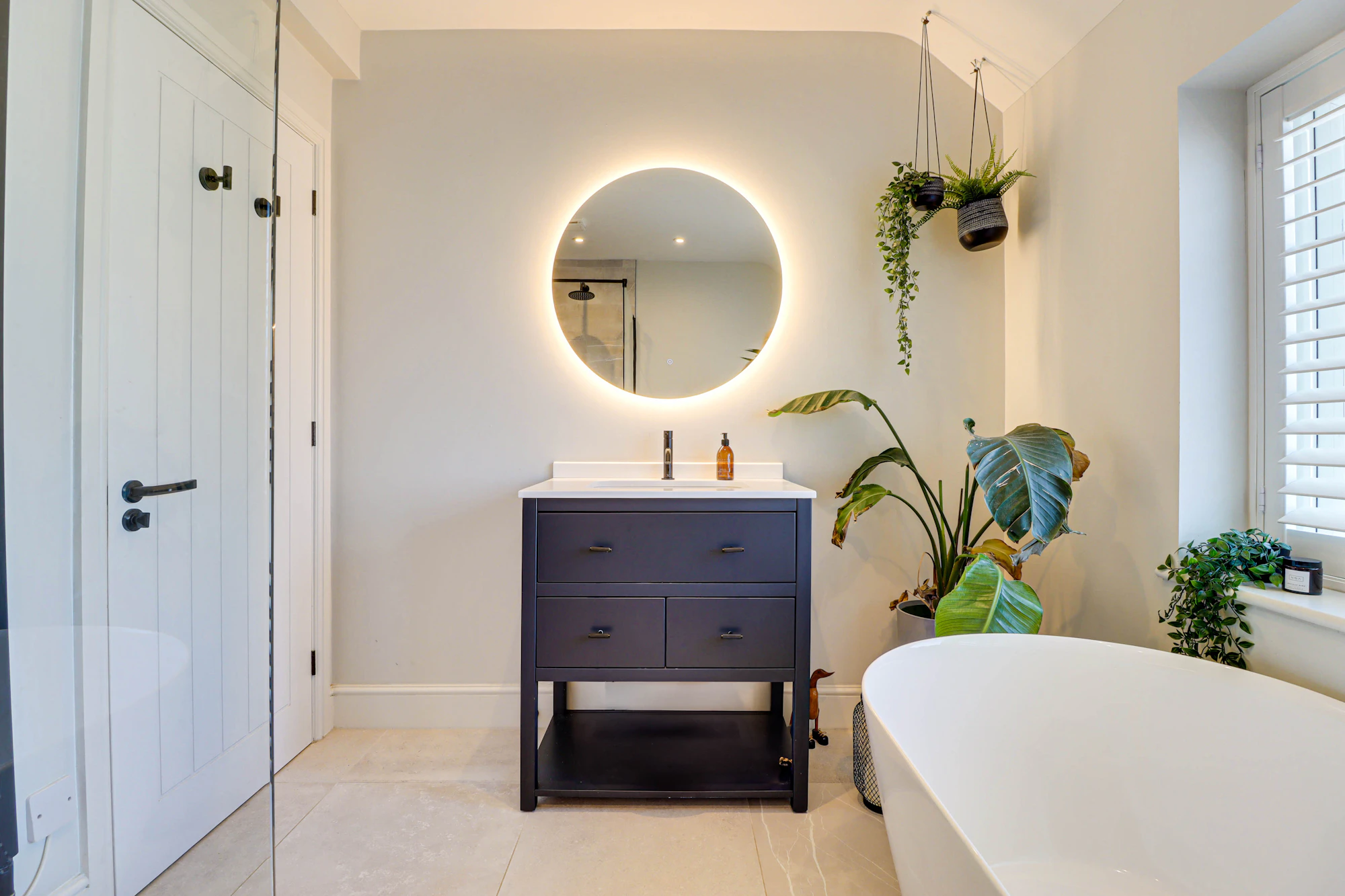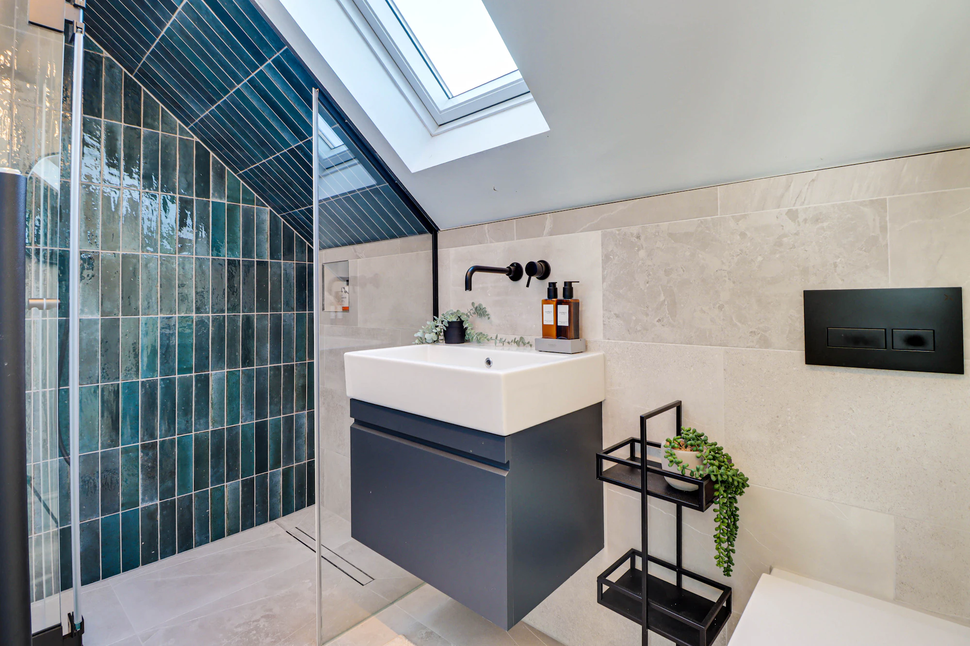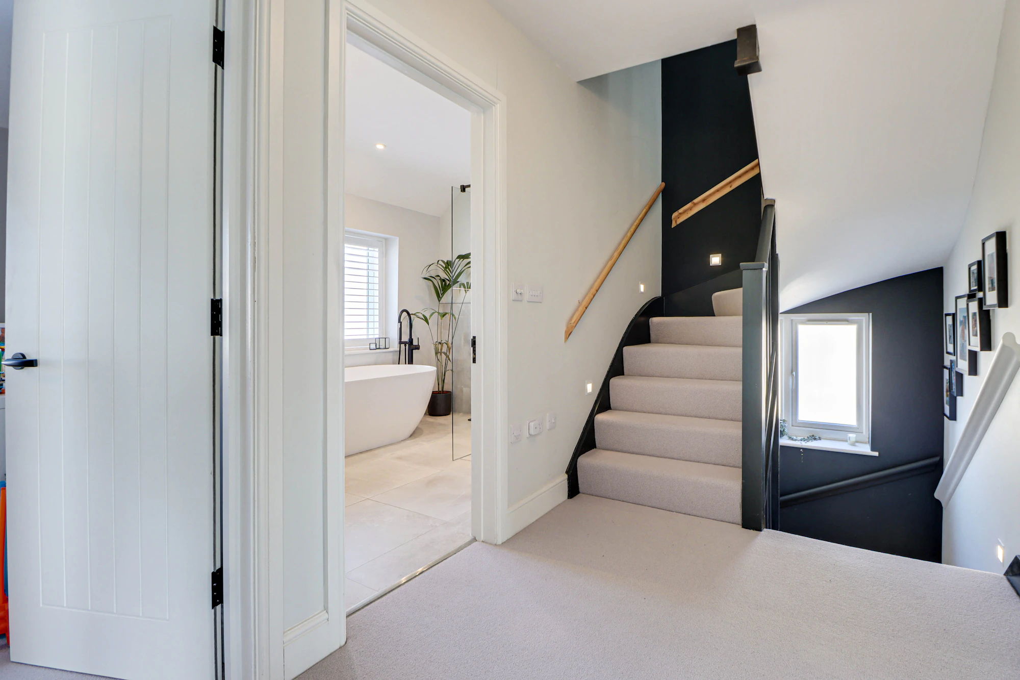 On the first floor, the principal bedroom boasts a stylish en-suite wet room, accompanied by two further well-proportioned bedrooms and a luxurious family bathroom featuring a freestanding stone bath and separate shower.