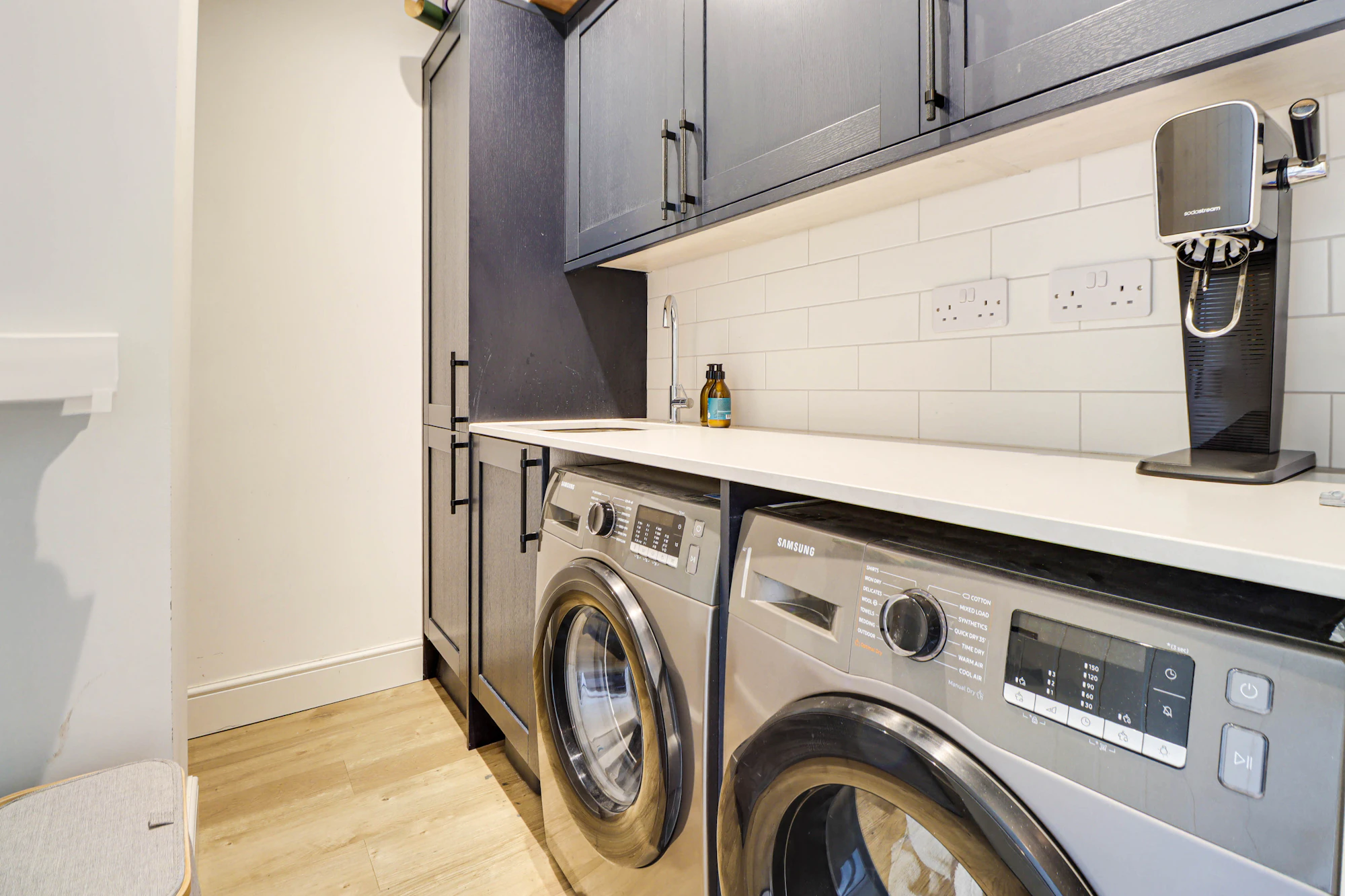 Additional ground-floor benefits include a cloakroom, a separate utility room with washer and dryer facilities, and ample storage.